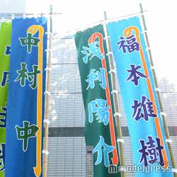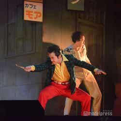 徳田プロ社長・徳田誠二役の浅利は、「チンピラをやらせていただきます。彼は生きるか死ぬかの二択しかなくて、後ろに下がったら死が待っていて、とにかく前に進むしか能がない、義理人情に厚く、出会った人間を大切にする人です」と説明すると、「明治座ではのぼりが立つんですね。そこに浅利陽介って大きく(書いてあって)、あれはやっぱりテンション上がりますね」とにっこり。すると中川も「(自分ののぼりを)見ました。写真撮りました」と話し、「もらえないみたいです。もらえないんですか?って聞いたら『ダメだ』って。明治座さんで保管する。また明治座に帰ってきてください(という意味だそうです)」と伝えると、浅利は「そうやって作っていただけたのがうれしいですね」とさらに感激していた。
