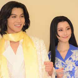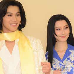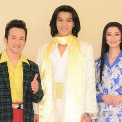 俳優の中川大志が6日、東京・明治座にて行われた音楽劇『歌妖曲~中川大志之丞変化~』(11月6日~30日上演)プレスコール・取材会に松井玲奈、浅利陽介と登壇。初日を迎える意気込みや、共演者とのエピソードを語った。