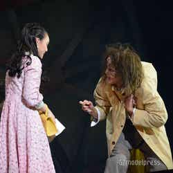 蘭丸ミュージック社長・蘭丸杏役の松井は、「出てきたところから最後まで、ずっと人のことを恨んでいる執念深い女になっています。全48公演ありますが、一瞬の隙もないくらい恨みのオーラを放ちながら舞台上に立っていたいと思います」と宣言。