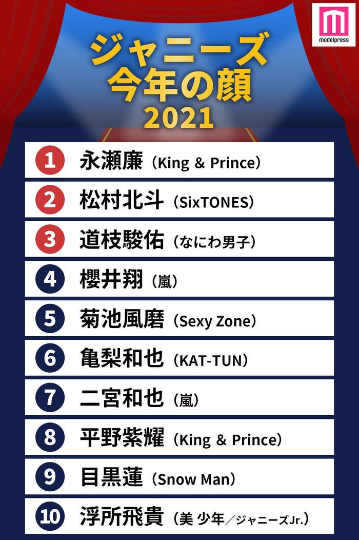 1位:永瀬廉(King & Prince)2位:道枝駿佑(なにわ男子)