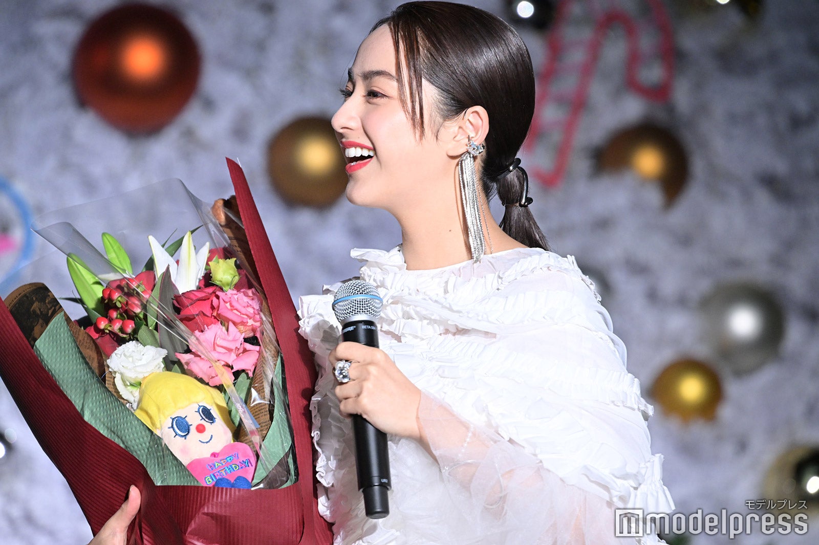 クリスマスの過ごし方について質問を受けた平は「姉の甥っ子と一緒にクリスマスパーティーをして、プレゼント交換をしたり」と返答。6年前の当日に姉の愛梨が点灯式のゲストを務めていたことを振られると「姉妹でこうしてスカイツリーとこちらの場所にご縁をいただいていて。とってもうれしく思います」と頬を緩め「今日は私の姉もどこかで見ていると思います」とも語った。11月12日に24歳の誕生日を迎える平は、スカイツリーの公式キャラクターであるソラカラちゃんから花束のプレゼントを受け取ると「かわいい~!ありがとう!」とにっこり。「こんな華やかなお花と共に、ソラカラちゃんのぬいぐるみまでいただいて。おうちに今日飾るのが楽しみになりました。ありがとうございます!」とも語った。