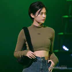 3人組音楽ユニット・水曜日のカンパネラの主演&ヴォーカリスト・詩羽は、シークレットゲストとして登場。ファッションショーのラストとなる「SPINNS」ステージの最初は同ユニットの「鍋奉行」がBGMとなっていたが、TikTokで大きなバズを巻き起こしミュージックビデオの再生回数が3300万回を超える(11月13日時点)「エジソン」とともに詩羽が満面の笑みでランウェイした。