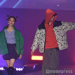 中町兄妹は「『Y2K』のギャル」をテーマとした「WEGO」のステージに揃って登場。綾は個性的なお団子ヘアに緑のダウンジャケットが映えるスタイリング、JPはレオパード柄のダウンジャケットにティアドロップのサングラスと、派手なスタイルでステージを彩った。