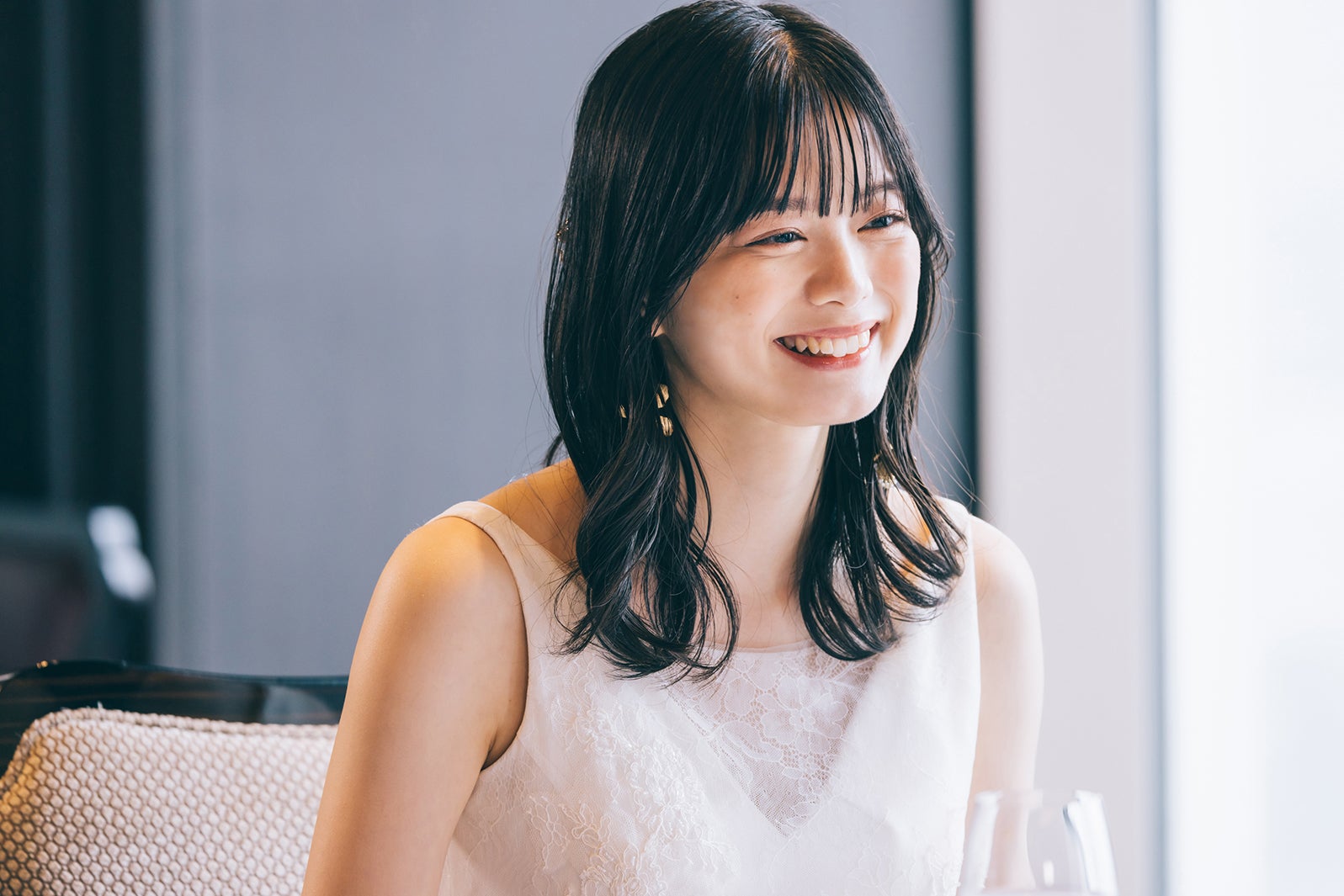 そんな紺野は、結婚生活初日から無意識な“あざとテク”で瀬戸と視聴者を魅了。第1話での結婚生活初日には、水族館でロマンチックなプロポーズを試みるも、思わぬハプニングに見舞われた瀬戸の緊張を解すように、くしゃっとした余裕の笑顔を見せた。そして、奥手と自負する瀬戸に、自然に「としき」と名前呼びをして自らアプローチ。さらに初めて一緒にベッドインすると、恥ずかしさでそわそわする瀬戸をじっと見つめ、悶絶級上目遣いでアピール。「照れちゃう」「びっくりしちゃう」など素直に気持ちを表す可愛らしさを見せながらも、積極的な一面とともに自然と繰り出される“あざとテク”に、視聴者からは「可愛すぎる」「好きになっちゃう」など胸キュンの声が多数寄せられた。