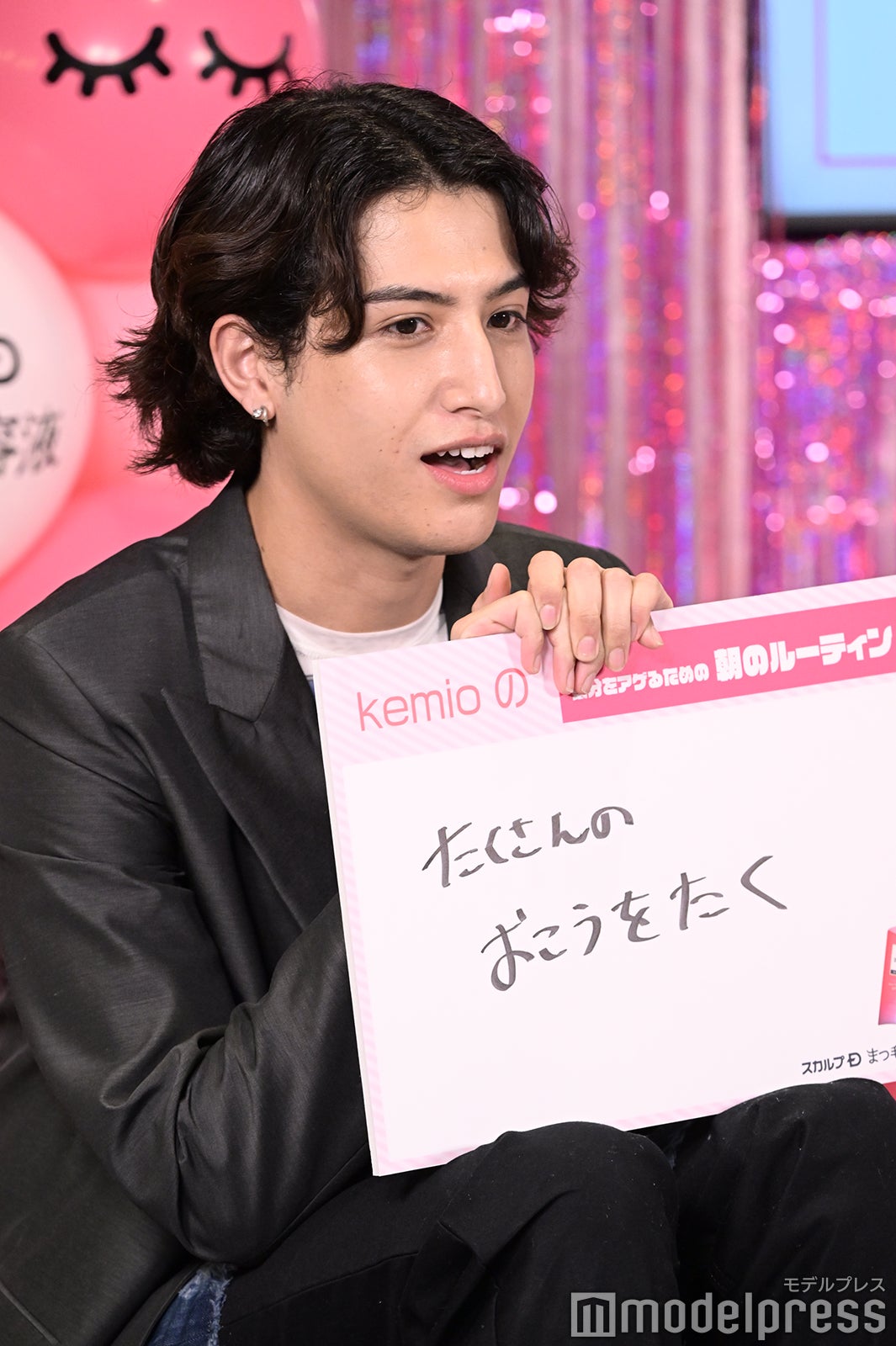 最も注力するのは目元だそうで「目元が一番息止めてる。メイクの中で。一番集中。それ以外は『は~』ってやって、『ふっ!』ってなってから、目に集中して。目を細かくやるときは息をいつも止めてる。それくらい超大事。ちょっとでもずれたりとかしたら、マジでテンション下がるから。超大変。それで目が覚めていくっていうのもありますけどね」と話していた。(modelpress編集部)