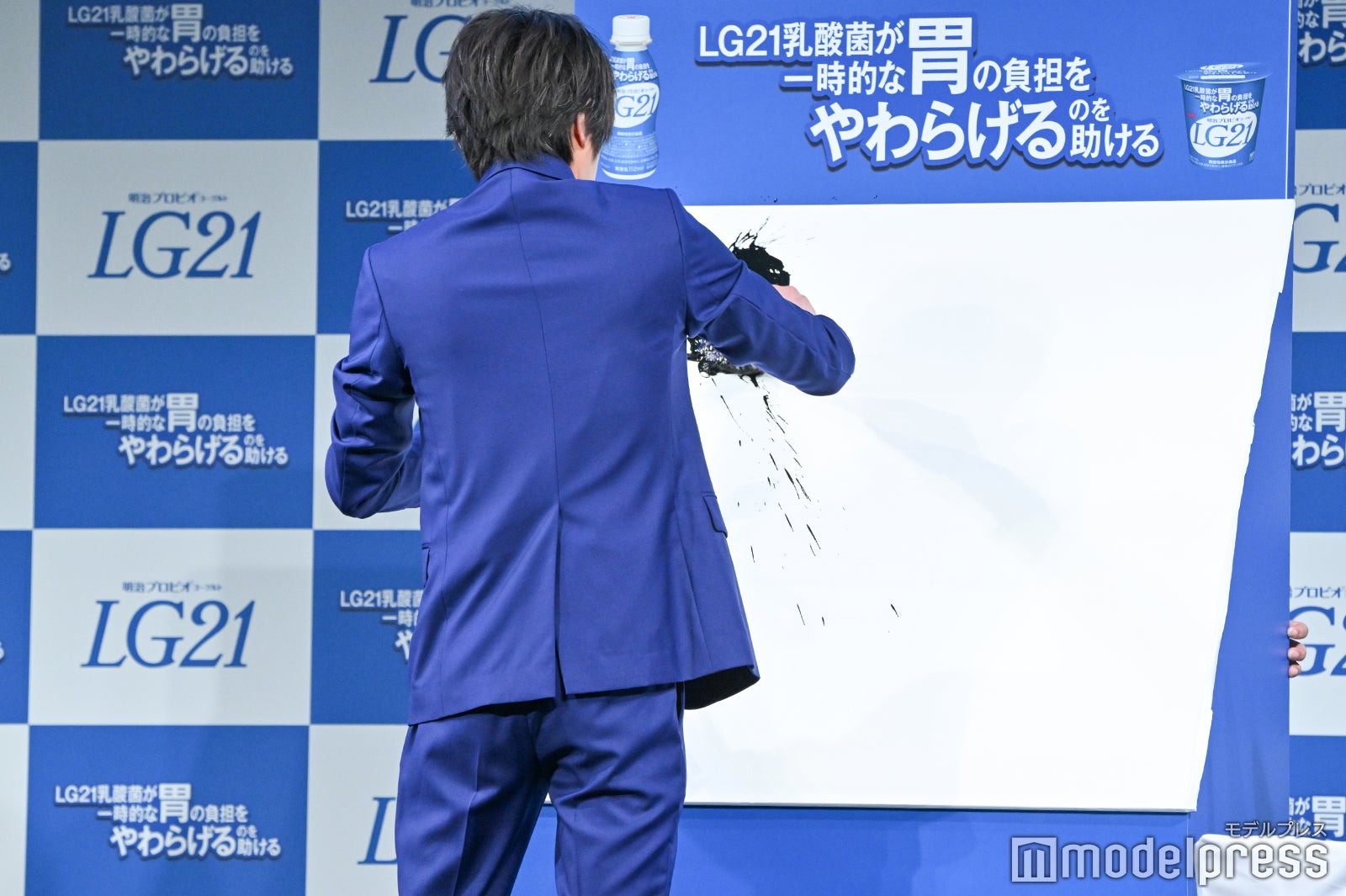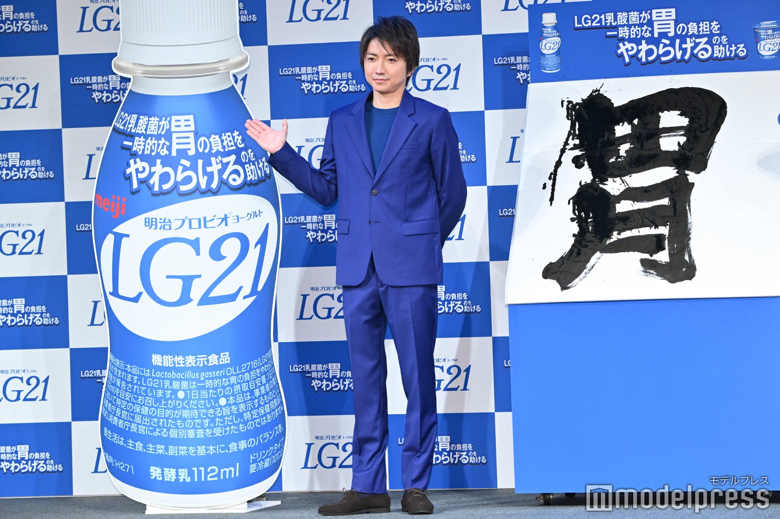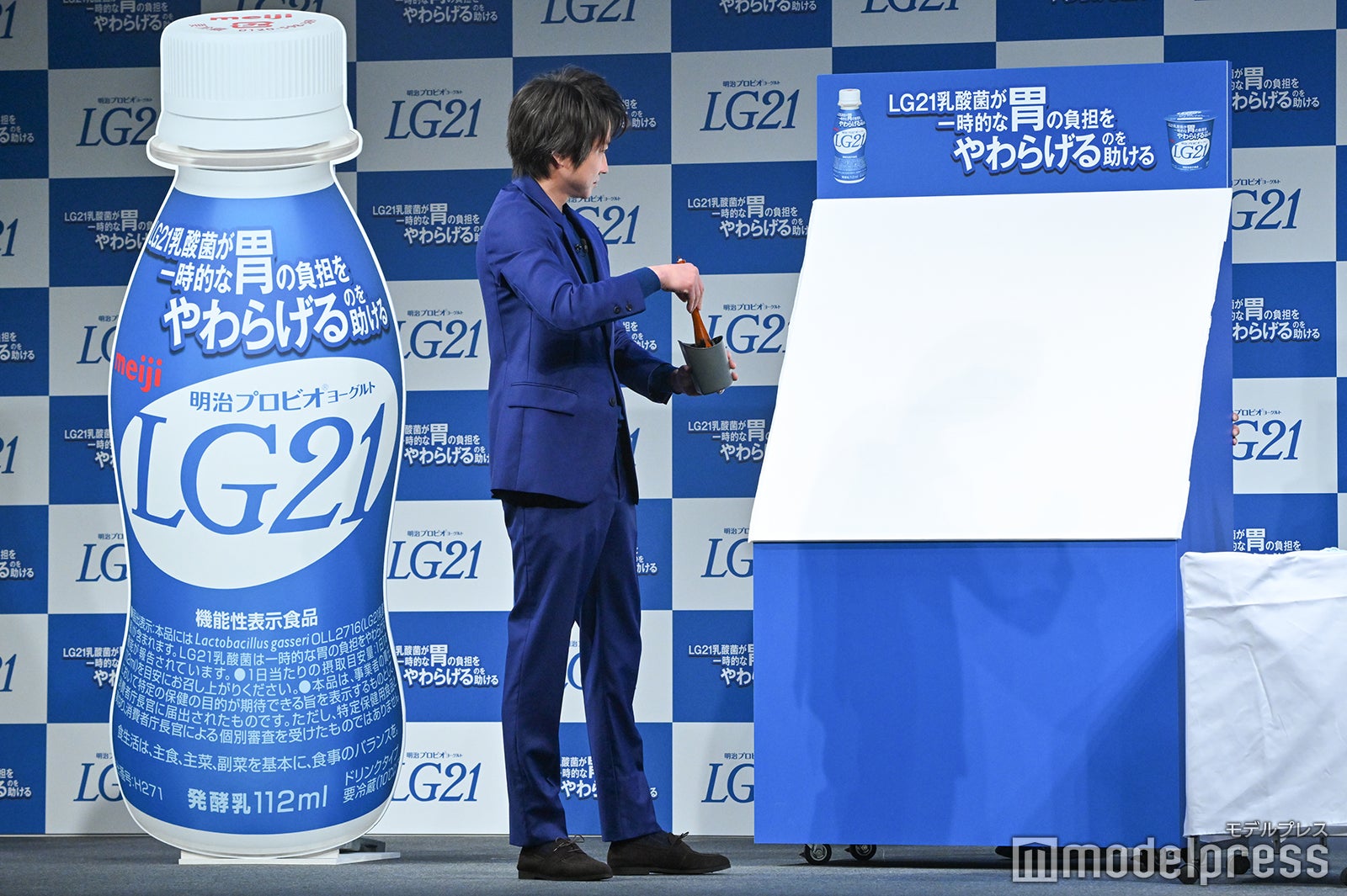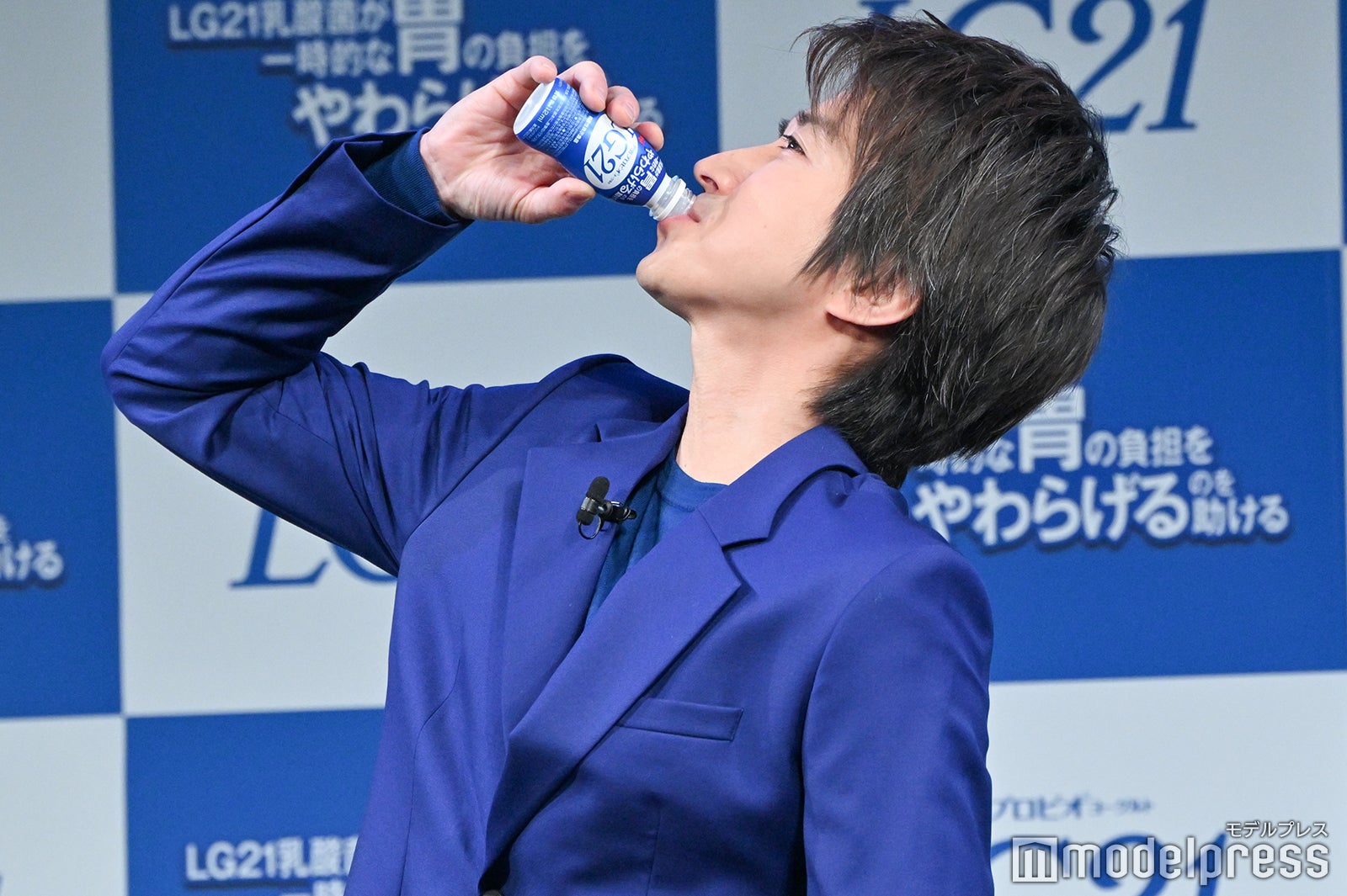 同商品にちなみ、青の衣装で登場した藤原は「みなさんも寝不足だと思うんですけど、サッカーにかけてブルーで行こうと思っております」と挨拶。2022年はどんな1年だったか尋ねられると「今年40歳になってですね、まあ早いですね。もう年末かと、残りひと月を切ったのかと。よく言えば充実しているのかもしれないですけど、年々、1年過ぎるのが早いなと思っています」としみじみと語り、「もう1つ、僕自身、胃識マネージャーに就任させていただいたということで、すべての働くみなさんの心と体の健康を願い、胃の大切さについて学ばせていただきました」とコメントした。