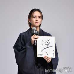 「話題の人賞」のアイドル部門に輝いたなにわ男子からはこの日、西畑大吾、大西流星、道枝駿佑、大橋和也の4人が登壇。来年の抱負を漢字一文字で、西畑は「良」とあげ、「良い1年にしたいなという意味を込めて。今年は良い出会い、良いご縁がたくさんあったので、来年もそんな1年にしたい。僕たちなにわ男子はデビュー2年目に入りまして、メンバー全員が20代になったので、少し大人っぽい“かっこ良い”一面も見せていけたら」と明かした。俳優部門に選ばれた橋本は「地」とあげ、初舞台『千と千尋の神隠し』で千尋役を演じたことから「今年挑むことが多かったので、来年は地に足をつけてしっかり進んでいきたいです」とさらなる意気込みを。