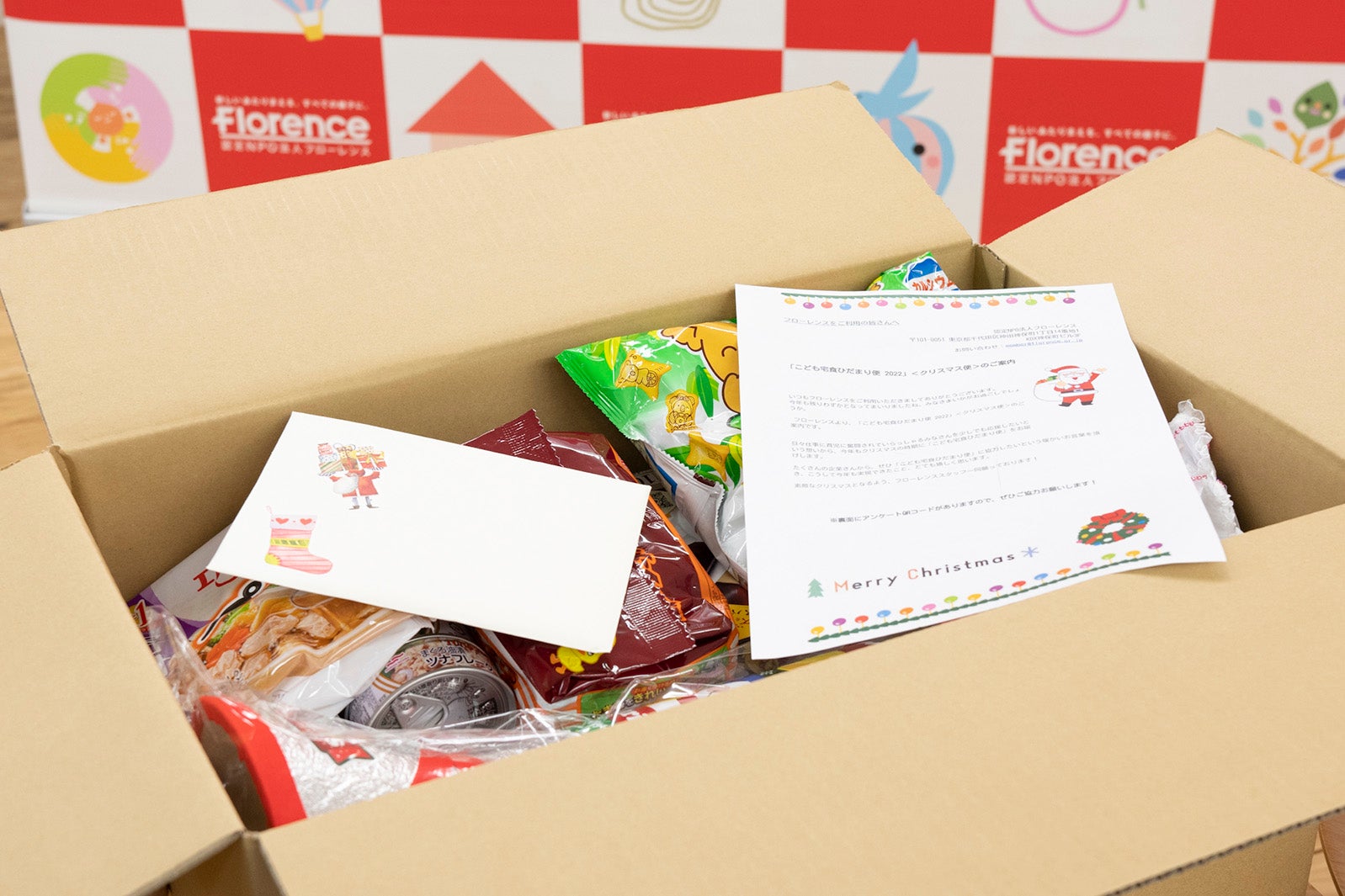 その後、認定NPO法人職員は『こども宅食』について「2015年にこども食堂を実施した際、こども食堂に来ることが難しいと思っている親子がいるかもしれないという課題が見えてきました。私たちは、こども食堂で待っているだけではなく、こちらから支援を届けていくアウトリーチ型の支援として、2017年より『こども宅食』を開始。経済的な困り事を抱えるご家庭に、定期的に食品などを配送することでご家庭との繋がりを築き、信頼関係を保ちながら支援を行っていきます」と説明。こども宅食のメリットとして、「支援を受けていることを周囲に知られたくないご家庭とも繋がることができますし、ご病気などで外出が難しいご家庭も支援できる仕組みとなっています。定期的な食品の配送によってゆるやかに関わることにより、ちょっとした悩み事を伝えて相談ができるような関係性も築くことができます。また、継続的に繋がれるので、ご家庭のちょっとした変化を見つけやすくなるのもこども宅食のポイントです」と話した。
