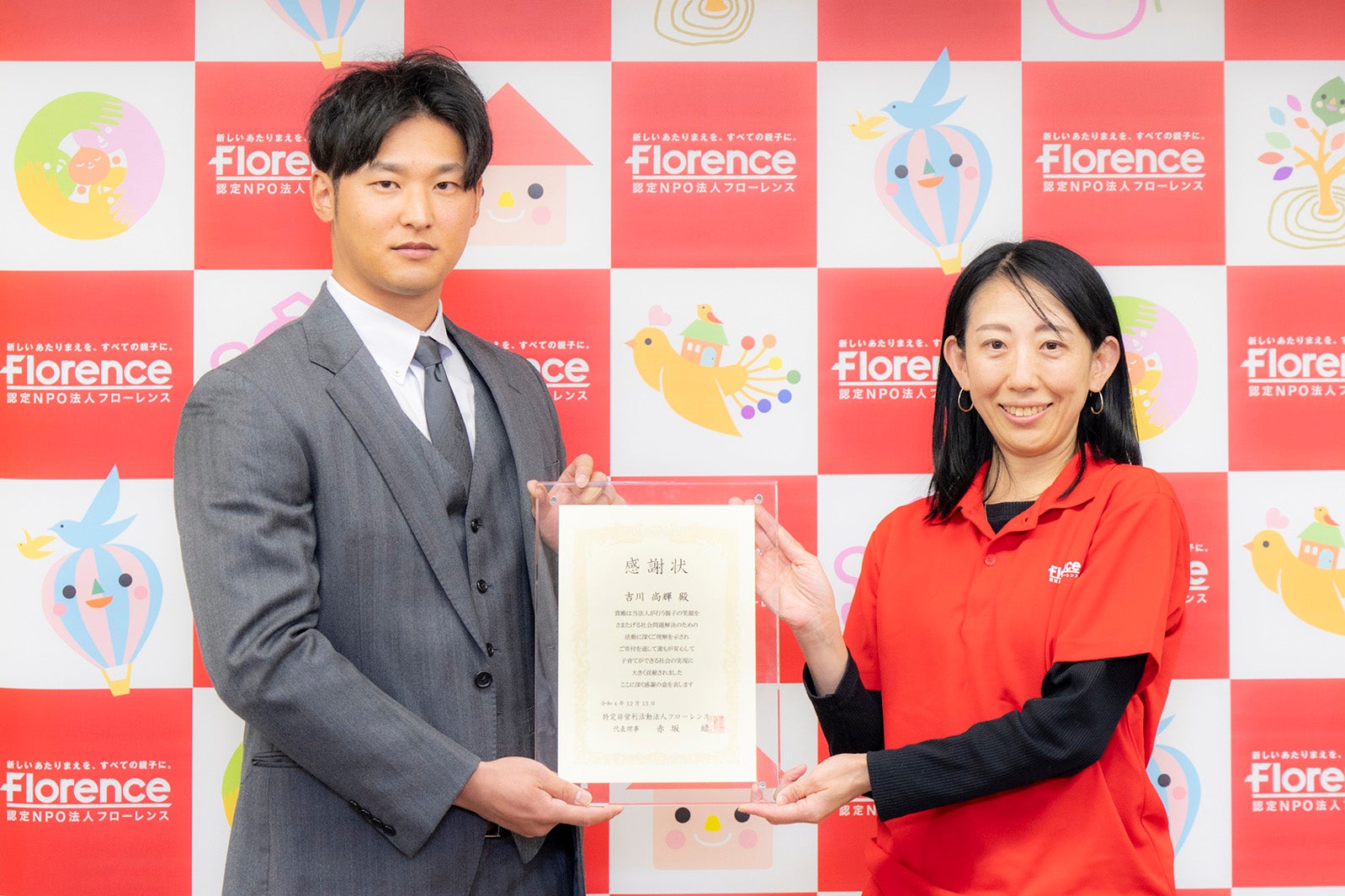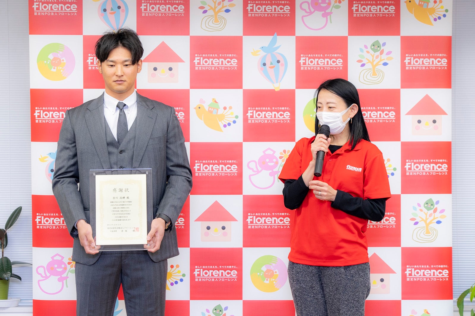 吉川尚輝選手、支援に感謝状送られる