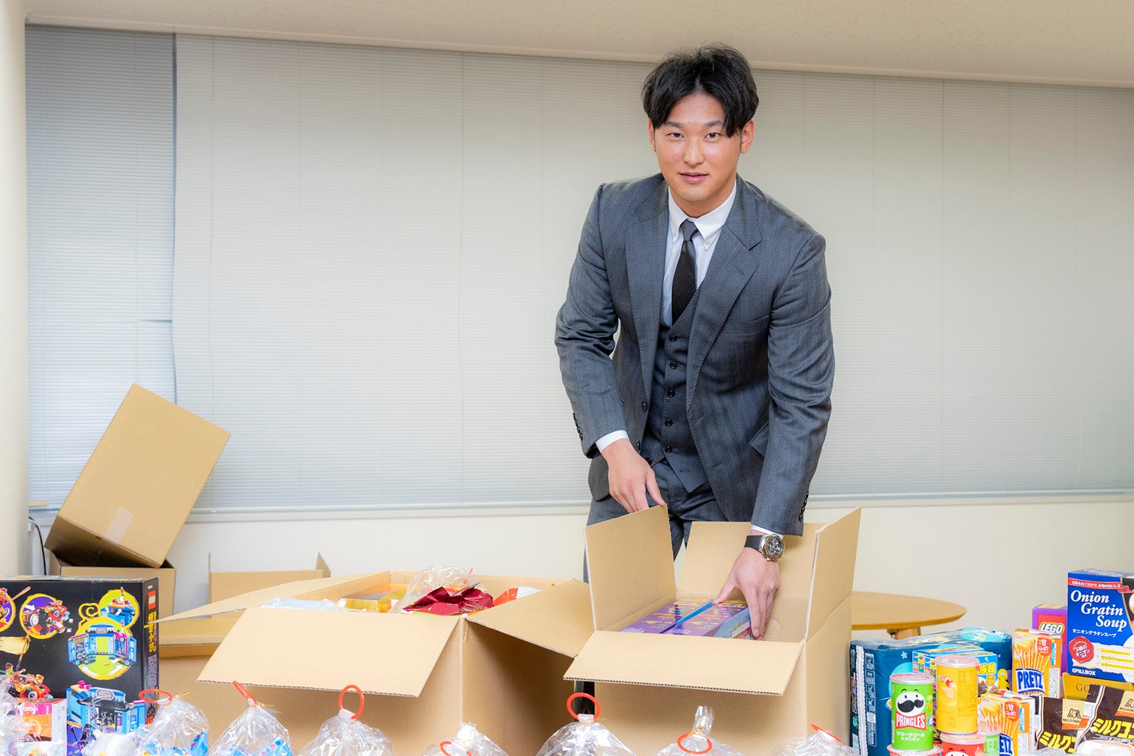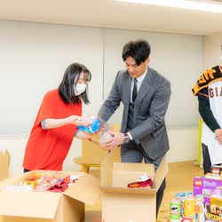 梱包ボランティアに参加した感想について、吉川選手は「年齢に応じたものを工夫しながら選ばれているというのをすごく感じましたし、お子さんだけではなく、親御さんへのものも多くあったことが印象的でした。また、いかにたくさん詰められるかも大事だとわかりました」と、一つひとつ噛み締めるように語った。また『ご自身の野球の成績に合わせた寄付活動』について、「小中学校のときに、家庭の事情で野球を諦めなくてはいけない人たちをたくさん見てきました。僕のお父さんがチーム監督だったので、嫌でもそういう話を耳にする機会が多かったです。もしその子が野球を続けていたらプロ野球選手になっていたかもしれないと思うと、本当に心が痛みます。一人でも多くのお子さんが夢に向かって頑張ってほしいなと思いますし、僕がプロ野球選手の立場として少しでも力になれるよう、自分自身も頑張らなきゃいけないなと思っています」とコメント。さらに、「さまざまな家庭環境の中で苦しんでいる人々を、こういった支援によって笑顔にできたら嬉しいです」と真剣な眼差しで語った。