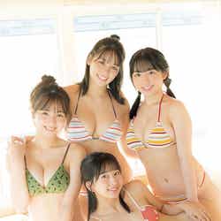 「ミスマガジン2022」受賞者の藤本沙羅、三野宮鈴、「ミスマガジン2021」受賞者の辻優衣、大島璃乃、内藤花恋が、26日発売の「ヤングマガジン」4・5号の巻末グラビアに登場。カラフルな水着姿で美しいバストとスラリとした脚を披露した。