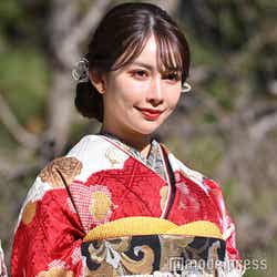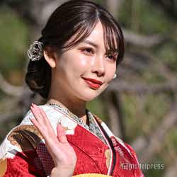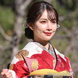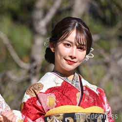 『non-no』専属モデルで、昨年はNHK『卒業タイムリミット』をはじめ数多くのドラマに出演し、ABEMAオリジナル『私たち結婚しました4』にも出演して話題を集めた紺野。庭園でのフォトセッション後に行われた囲み取材に応じ、晴れ着を着た感想と晴れ着のポイントを聞かれると「私は全身青で金の刺繍が入っているお着物を着させていただきました。赤とかを着る機会が多いので新鮮な気持ちで新年、身が引き締まる思いです」と吐露した。また、最近はまっているものを聞かれると、紺野は「お仕事の合間や帰ってきてからご飯を作ることにはまっていて、忙しいとなかなかゆっくりと食事をする時間が取れないので、ほっと一息つける時間を自分で作っています」と家庭的な一面を覗かせ、得意料理を尋ねられると「得意料理はないんですけどなんでも作ります。モツ煮とか、唐揚げとか、茶色いものばかりなんですけど(笑)、鍋とかも1人でやりますし、食べたいと思ったものを作るようにしているんですけど、強いて挙げるならキーマカレーが得意かなと思います」と笑顔で答えた。