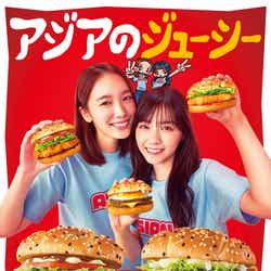 3種のハンバーガーが期間限定登場することを記念して、西野と飯豊の仲良しデュオがアーティストとして、90年代の名曲『アジアの純真』のカバー曲『アジアのジューシー』を歌うMVが、26日より本ファストフード公式YouTubeにて公開される。楽曲のフルバージョンだけでなく、レコーディング風景や食レポ、また高校時代に本ファストフードでアルバイトしていた西野の当時の制服姿など、TVCMの映像には入りきらない奇跡のデュオ・アジアのジューシーの魅力を余すところなく楽しむことができるMVとなっている。ここでしか見られない、プライベートでも仲良しな2人の息ぴったりな歌声やダンスに注目だ。西野七瀬&飯豊まりえ、抜群のコンビネーション披露