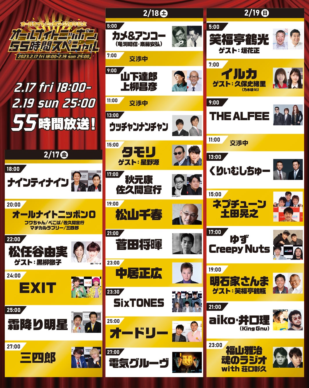 「オールナイトニッポン55時間スペシャル」タイムテーブル発表