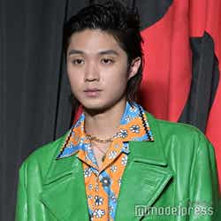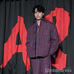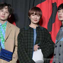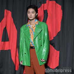 上杉柊平はニットとシャツを重ね、ヘリンボーンのジャケットを羽織ったスタイルを披露。GENERATIONS from EXILE TRIBEの佐野玲於はチェックのセットアップにコートを着用して登場した。