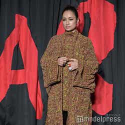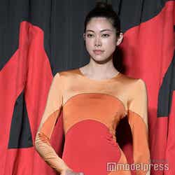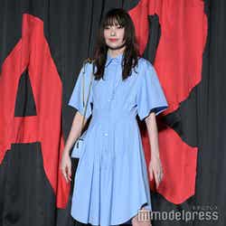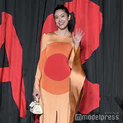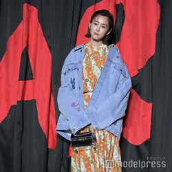 桐谷は春らしいフェミニンなドレスに敢えてオーバーサイズのデニムを合わせたと解説。ワンピースのスリットから美脚をのぞかせた。武井咲、第2子出産後初の公の場に登場
