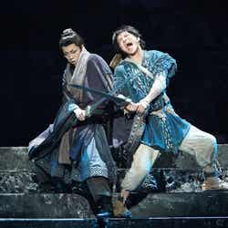 中華統一を目指す若き秦国王・嬴政と、信の親友でともに天下の大将軍を目指す・漂の2役を務めるのは、映像・演劇で鮮烈な活躍を見せる小関と牧島。昨年5月にコロナ禍で全日程完売となったミュージカル『四月は君の嘘』で主演を務めた小関と、ミュージカル『刀剣乱舞』や映像作品でも活躍中の牧島が、帝劇初登場となった。