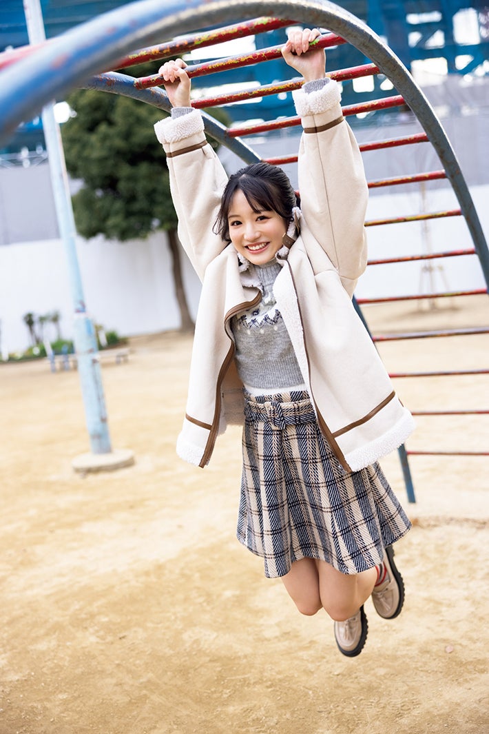 1月18日に誕生日を迎え、22歳になってからは初のグラビア撮影となった今回は、「大人の女性の条件」を3つテーマに分けて撮り下ろし。スラリとした脚がまぶしいルームウェア2着を着こなし「丁寧な大人の女性」らしく自分で豆から挽いたコーヒーを嗜む姿や、お団子ヘアにカジュアルなトップスで公園に繰り出す姿などで大人の美しさを表現。