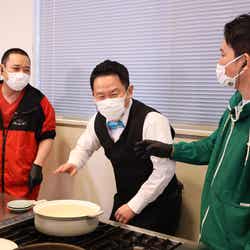 その山内は「1位を取るためにすごいの持ってきました」と、地元・島根で捕れた2万円の松葉ガニを用意。さらに、これまで毎度登場している島根の名産・しじみを今回も使用すると宣言し、全員一抹の不安がよぎる。豚バラとキムチを豪快に入れる大悟のうま辛スンドゥブキムチ鍋に、チゲ鍋好きの佐々木は大喜び。ノブのカレー鍋は大悟から「薄いカレー」とツッコまれるも、ノブにはある秘策が。大吉は今回も調理家電を駆使して、大豆から作る新鮮な豆乳を使った鍋料理に挑戦。豆乳鍋が好きな齊藤は「すごい!濃厚そう」と期待を寄せる。濱家はトビウオから、だしをとる高級感たっぷりなしゃぶしゃぶを作る。華丸は地元・博多の友人から取り寄せたモツを使い、華丸流に仕上げるモツ鍋を調理。「本場のモツ鍋を食べてみたい」と興味津々の佐々木と齊藤は何度も「おいしそう」と口にする。
