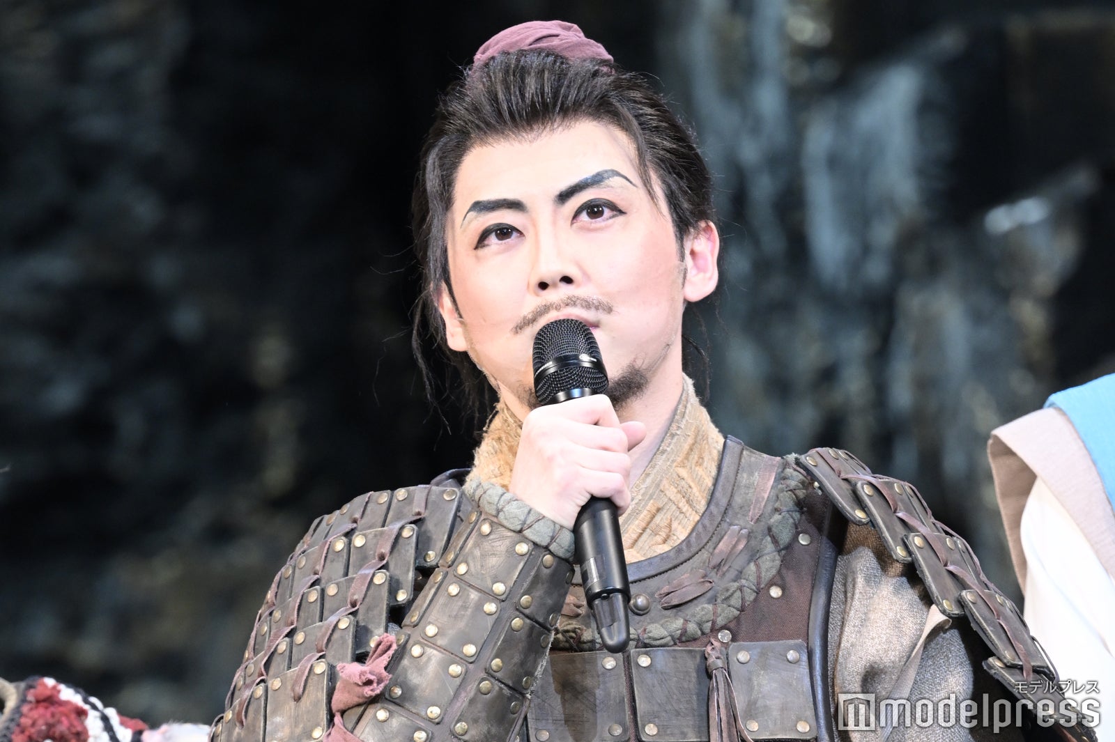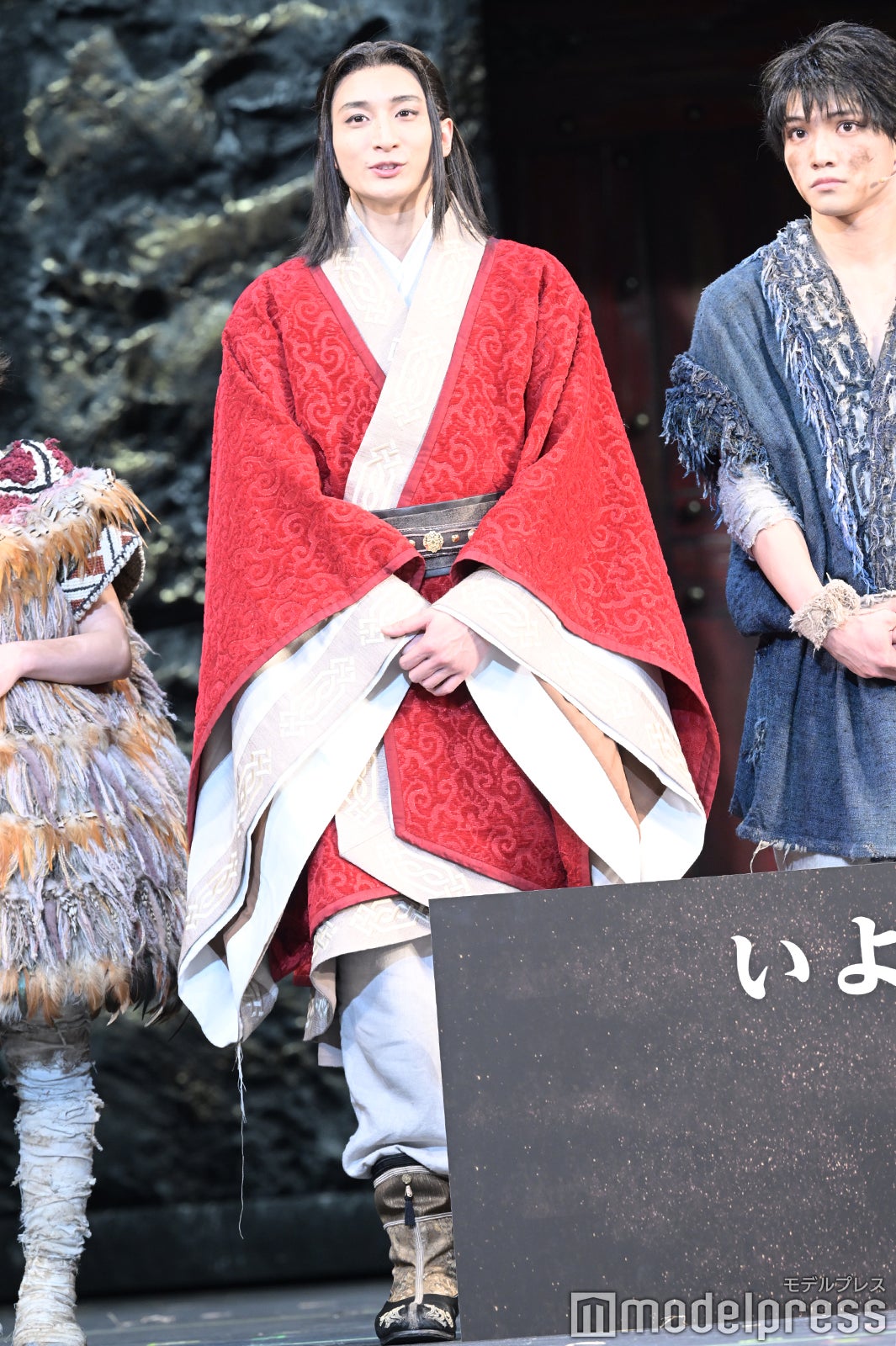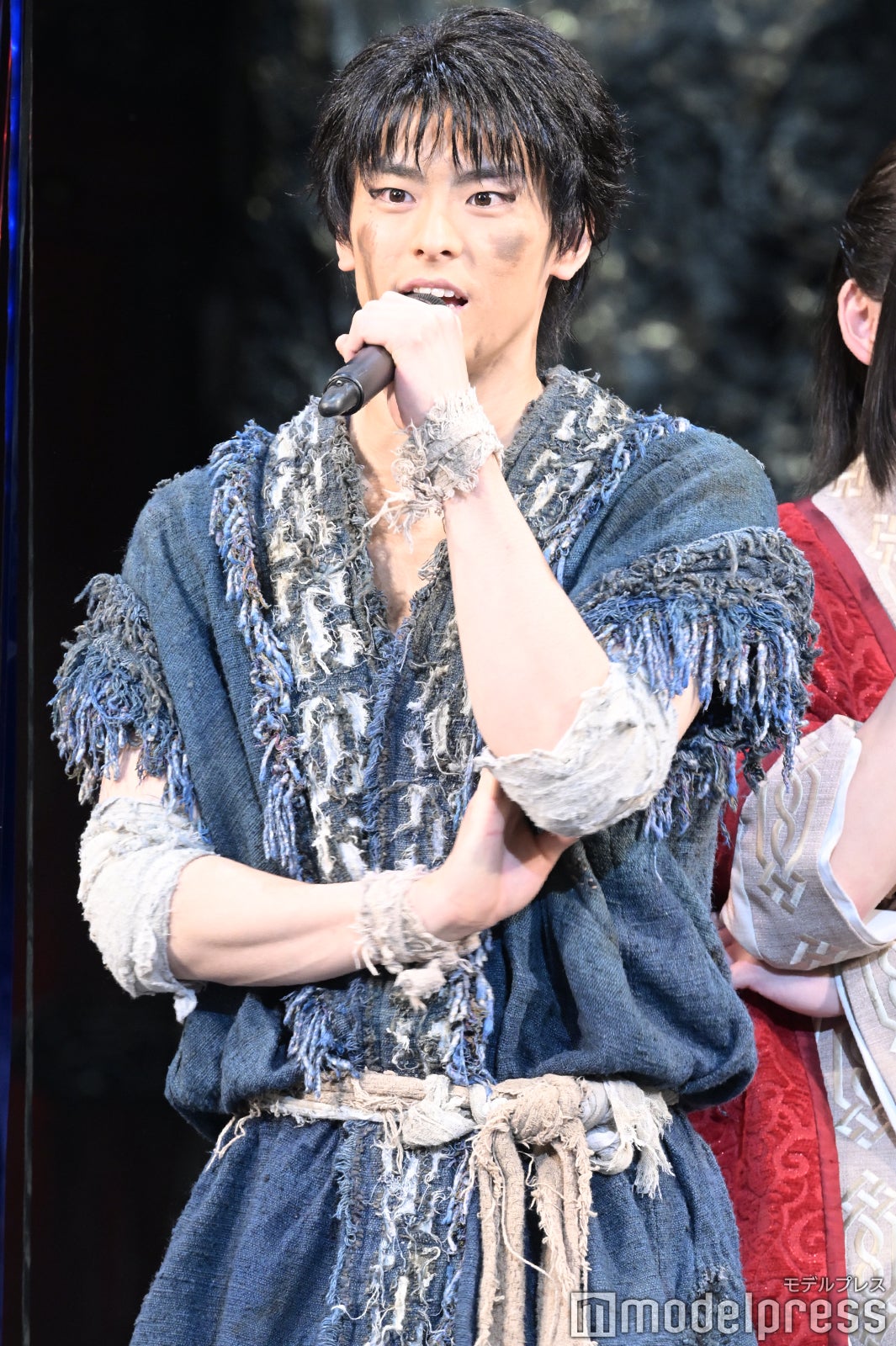 大人気コミックを舞台化した本作は、天下の大将軍を夢見る戦災孤児の少年・信や、中華統一を目指す若き秦国王・嬴政が、史上初の中華統一を目指す姿を描く壮大な歴史ドラマを描く。山の民を圧倒的な力で率いる“山界の死王”こと楊端和を演じる梅澤は、私服姿で共演者にはサプライズで登場し「お久しぶりです!」「すいません。こんな形で」と笑顔。