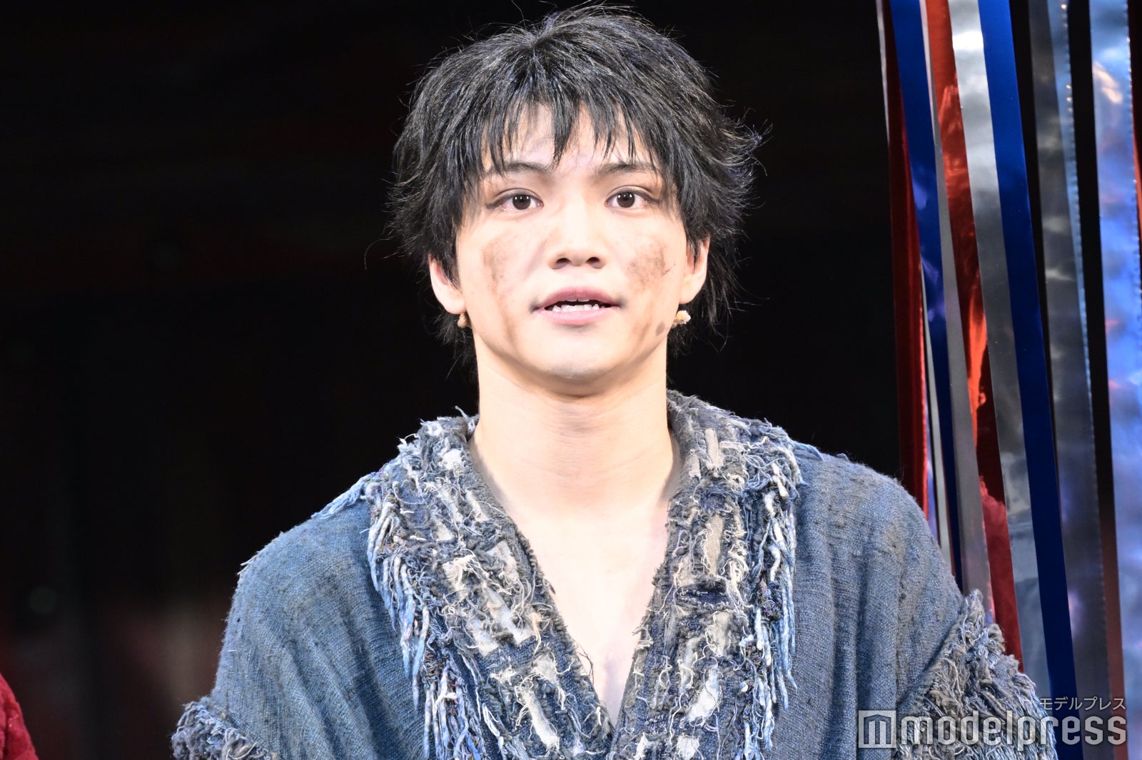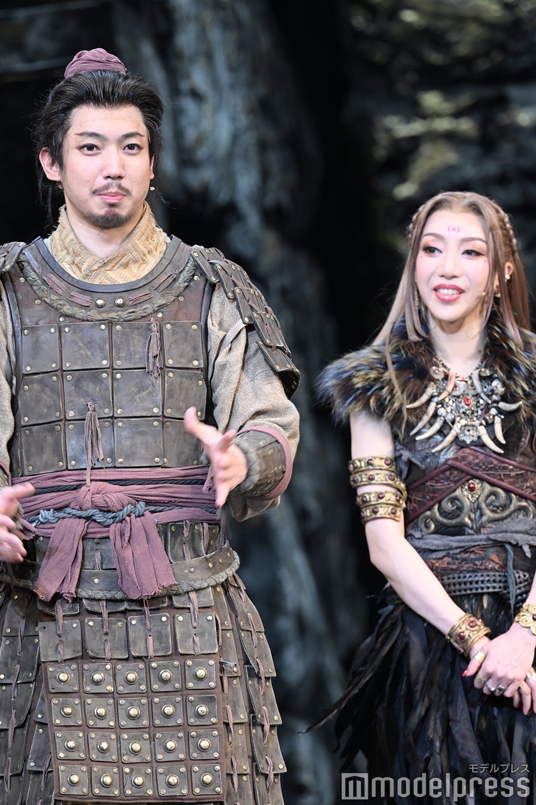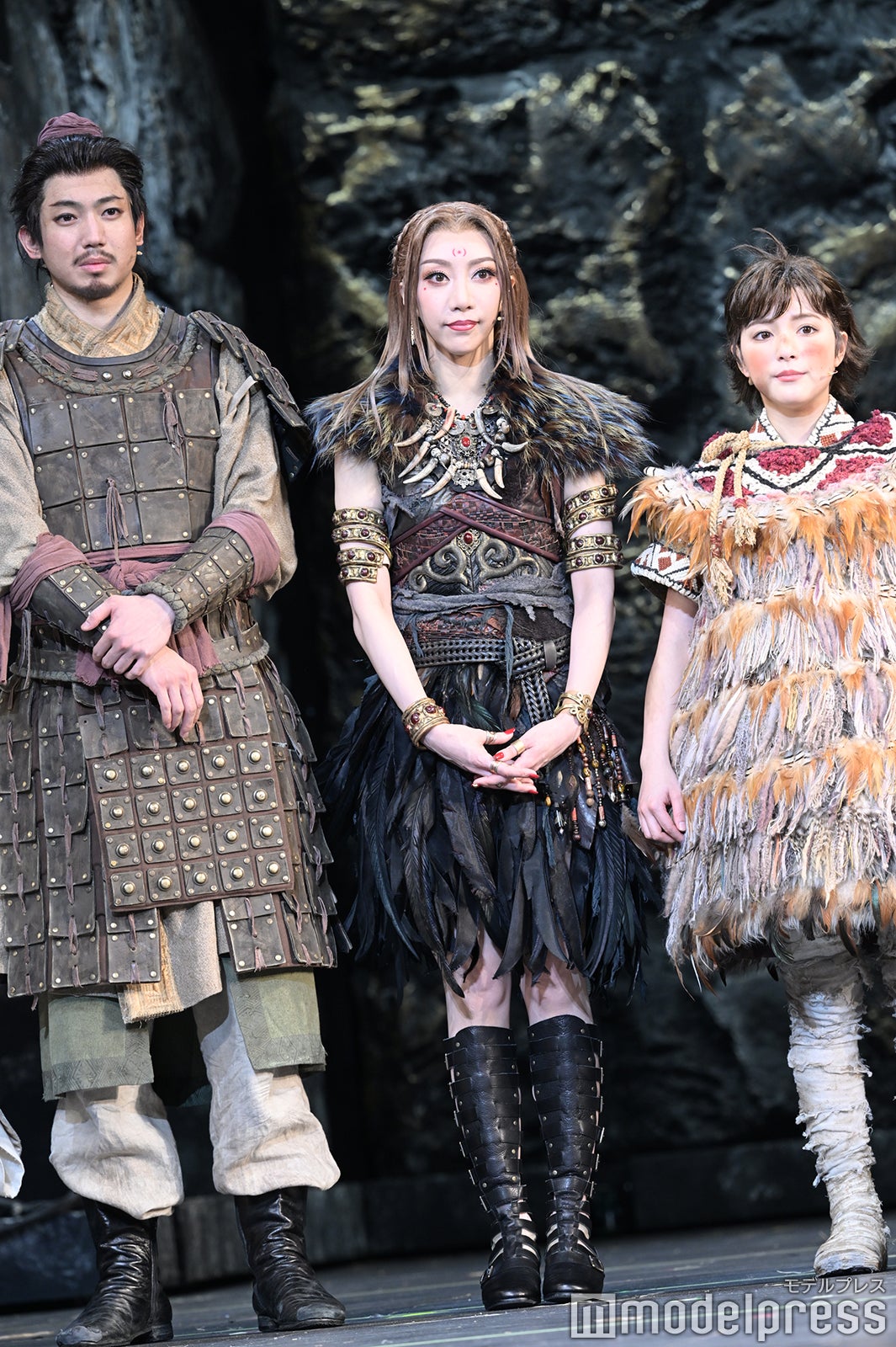 大人気コミックを舞台化した本作は、天下の大将軍を夢見る戦災孤児の少年・信や、中華統一を目指す若き秦国王・嬴政が、史上初の中華統一を目指す姿を描く壮大な歴史ドラマを描く。山の民を圧倒的な力で率いる“山界の死王”こと楊端和を演じる梅澤は、私服姿で共演者にはサプライズで登場し「お久しぶりです!」「すいません。こんな形で」と笑顔。