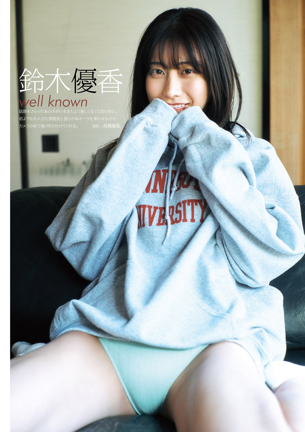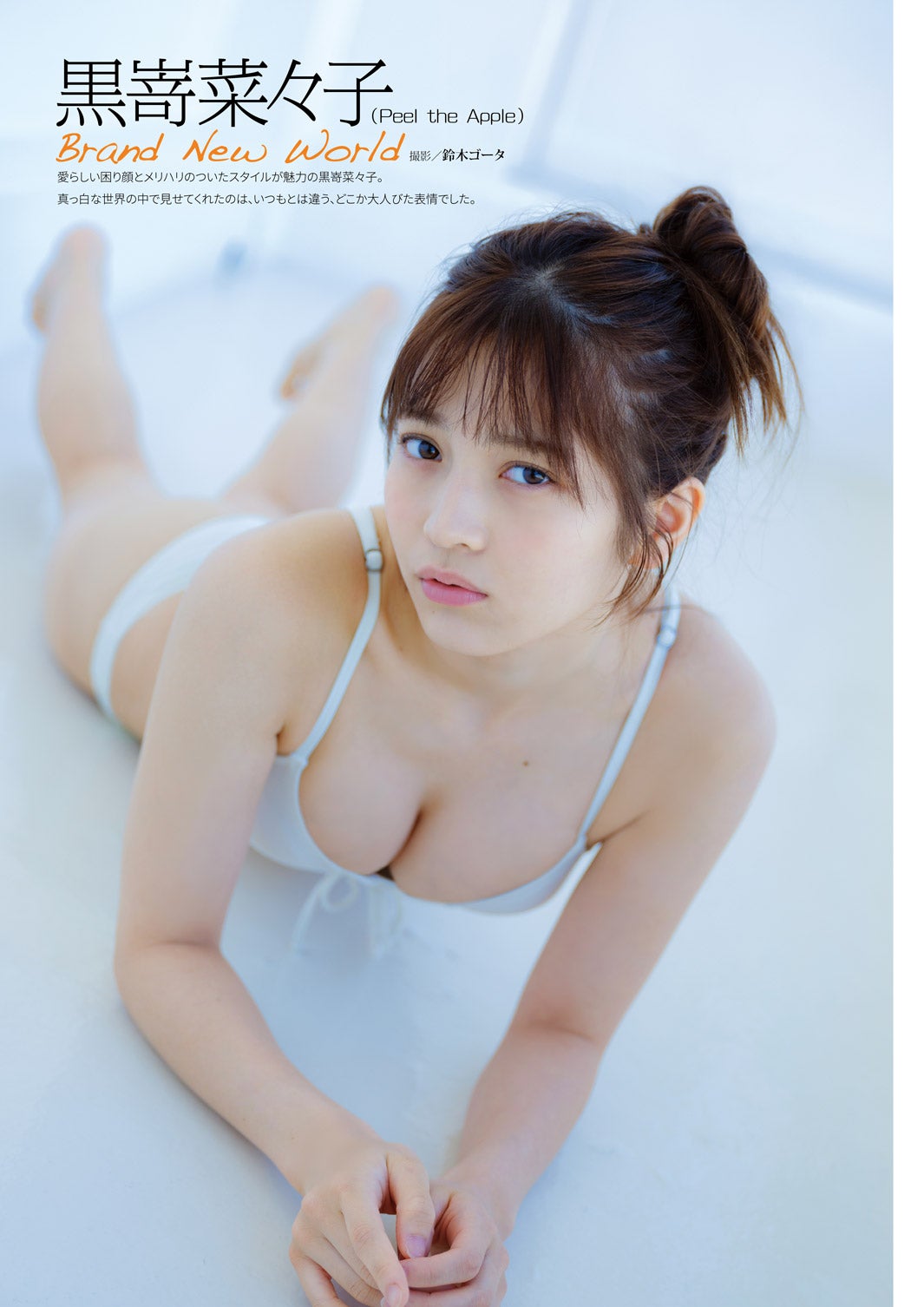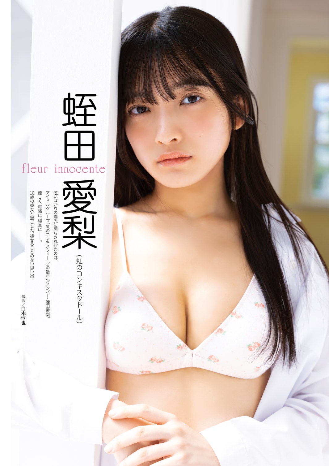 アイドルとして圧巻のステージパフォーマンスでファンを虜にしている彼女が、今回はその柔らかな雪肌とともに、大胆なポージングで艶やかに大人っぽく魅せた。裏表紙で着用しているワンピース水着では、柔らかく透き通る肌を存分に堪能できるスタイリッシュなカットを多数掲載している。他にも、浴衣を脱ぎほどき素肌をみせるポーズなど、和の空間でしっとりと撮影した今回、彼女の隠しきれないフェロモン溢れ出した内容となっている。