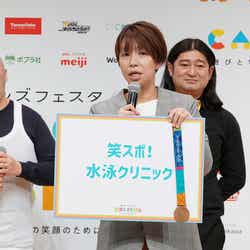 このほか、元バスケットボール選手の石橋貴俊、元競泳選手の中西悠子からは、スポーツ体験教室が行われると発表。会場では、アテネオリンピックの銅メダルを持参した中西と、身長2m10cm、体重135kg、足のサイズが33cmだという石橋に驚きの声が。石橋の「プロフィールが『北斗の拳』のラオウと一緒」というコメントには、大人から笑いが巻き起こっていた。