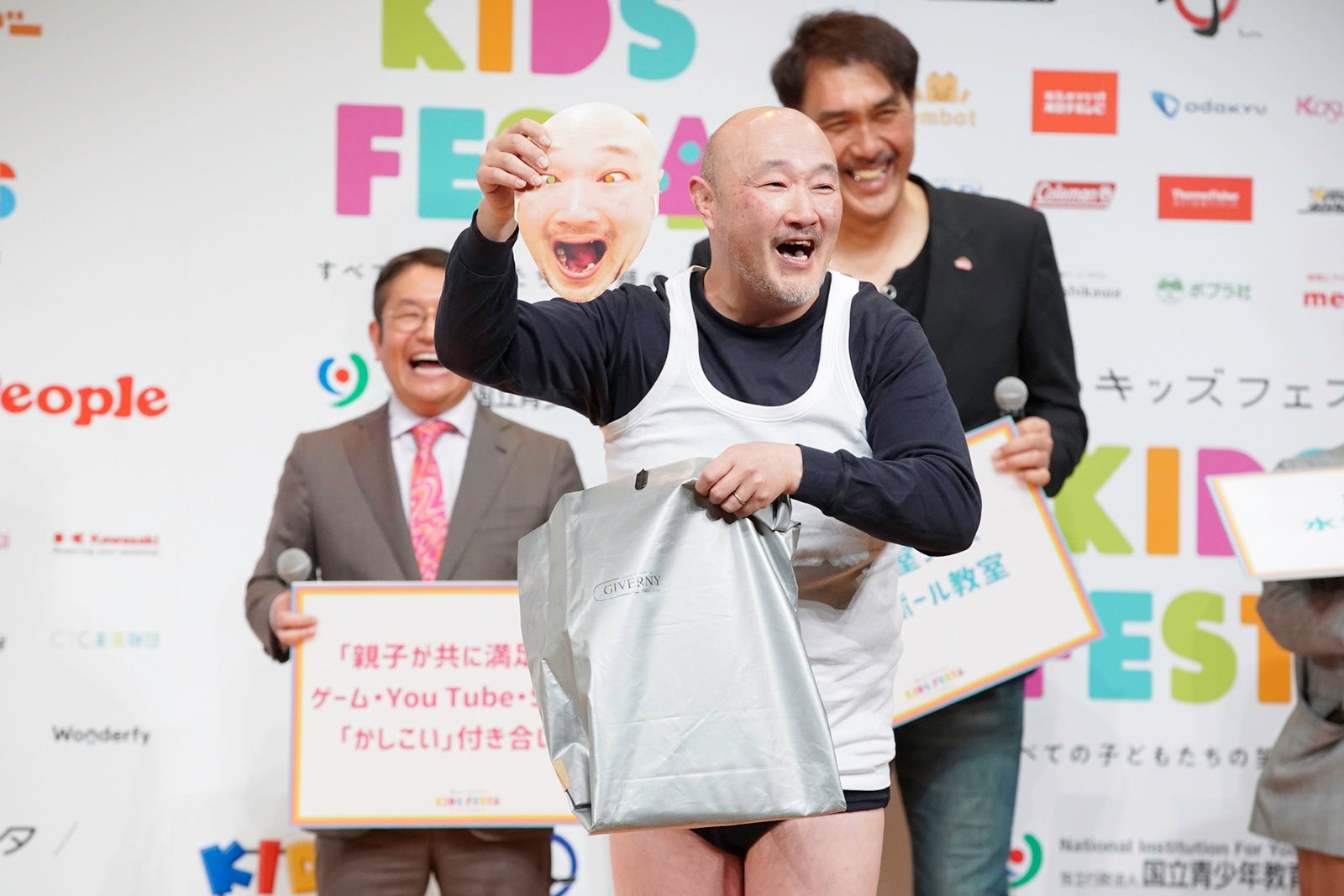 体験型展示紹介では、これまで各地で開催されてきた「やってみた展」でアンバサダーを務めたゆりやんが登場。ゆりやんは、当日、キッズフリマや「国際デジタルえほんフェア」が開催されると述べつつ「今回の目玉は人間空気砲です!」と嘘の紹介。MCのタケトから「空気砲が盛り上がったからって、自分でやろうとしなくていいですから!」と注意を受けるも、まさかの偽のおならで笑いを誘った。そんなゆりやんには「子どもたちを笑わせる極意があるのか?」との質問が。すると、一度姿を消し、スポーツブラ&スパッツ姿で再度登壇したゆりやん。ボディビルポーズを無言で披露した。石田から「(その笑いは)子どもにはムズイって!」とツッコミが入ると「(極意は)裸になることです」と語り、会場からは笑い声が上がった。