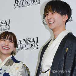 「今日好き」しゅんまや夫婦「世界一可愛い」振袖姿褒め合いラブラブアピール 取材陣も感嘆<関西コレクション 2023 S/S>
