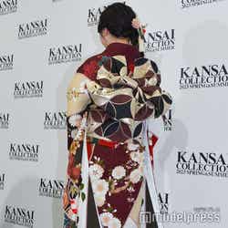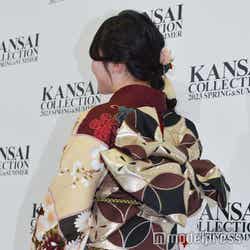 また、振袖姿でランウェイを歩いた本田は「ランウェイを着物で歩くことは初めてだったので、お客さんの声を久々に感じれましたし、大好きな着物の魅力が伝わればなって歩きました」「ワクワクの緊張感はありました」と回顧し笑顔。自身で選んだという着物について「高校卒業ということもあるので、ブラウンが大人っぽい着物を選びました」とし、名前の“望結”をテーマに二重に帯が結ばれていることも説明した。