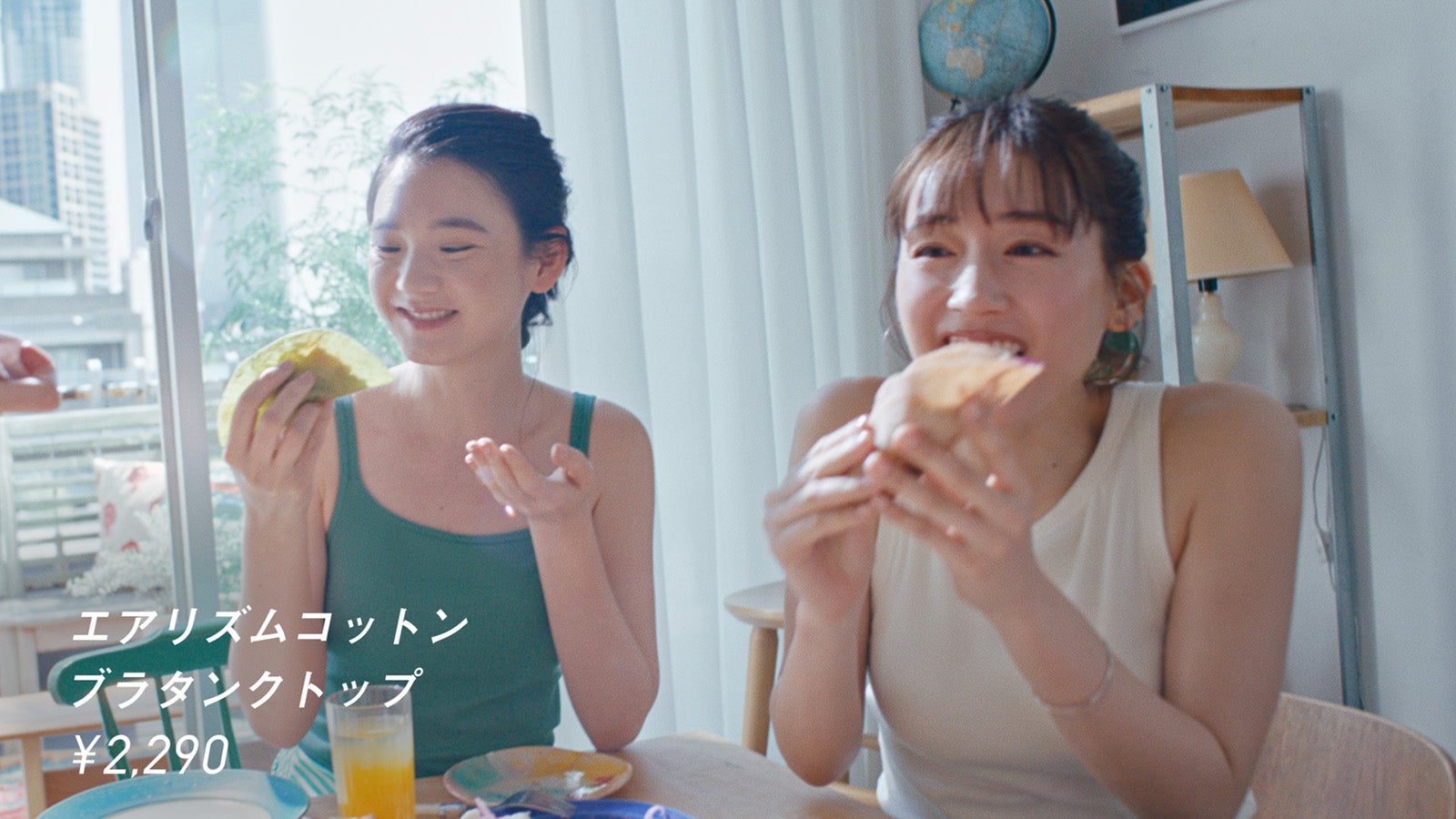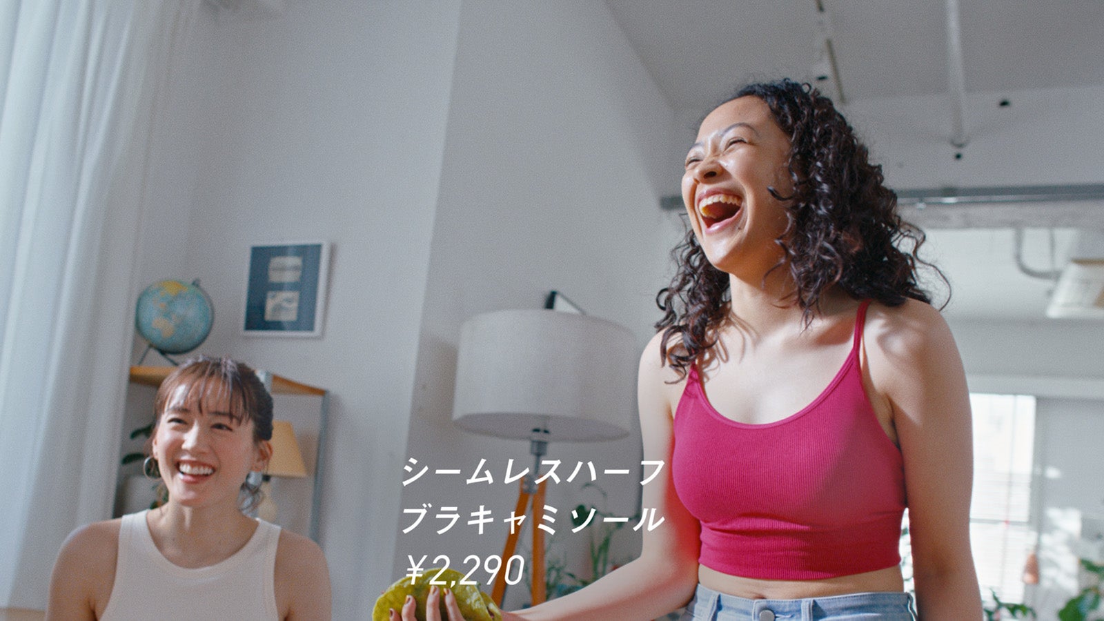 ほぼ台本無しで撮影された今回のCMでは、自然体の綾瀬を撮影。綾瀬は、テンポよく進むシーンの中で印象的だった場面について「野菜を切ったりダンスをしたり、料理もおいしかった」と笑顔でコメント。爽やかなホワイトの「ブラトップ」をヘルシーに着こなし「しっかりフィット感やホールド感があって着やすい。今年らしいカーゴパンツとの組み合わせが気に入っています」とお気に入りを明かした。CMのストーリーにちなんで、ヘルシーに過ごすために心がけていることは「物事の良い面を見ること。あとは、歩いたり、ストレッチや運動をすること」と綾瀬がいつも輝いている秘訣も語った。