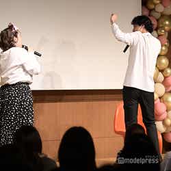お笑いタレントの丸山礼が自身の誕生日である4月1日に、都内で約4年ぶりのファンイベント「うまれてまるまる26ねんの御礼ぱーてぃ」を開催。ゲストに人気クリエイターのkemio(けみお)が登場し、仲睦まじいトークを繰り広げた。