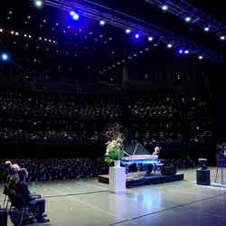 X JAPANのYOSHIKIが3日、東京ガーデンシアターで行われたアウトソーシンググループの合同入社式にサプライズ登場した。新入社員激励のため、「Forever Love」のピアノ演奏を披露。さらに、3月28日に亡くなった音楽家の坂本龍一さんを偲んで、「戦場のメリークリスマス」を演奏した。