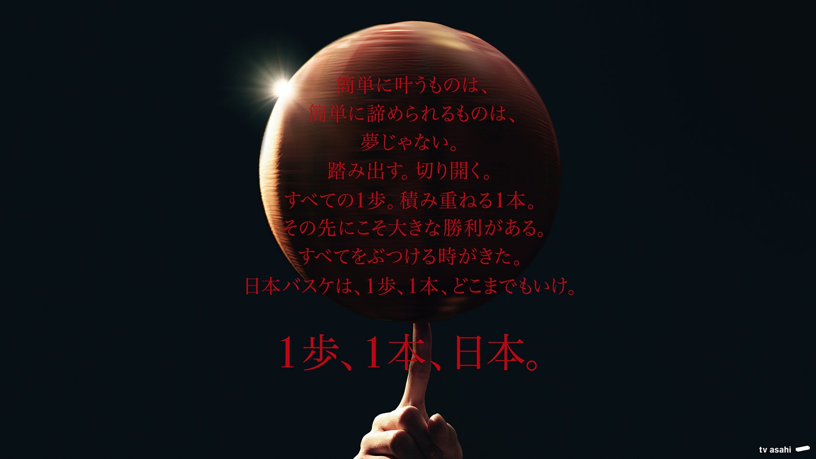 また、広瀬がPRでナレーションをする「1歩、1本、日本。」というキャッチコピーには、「すべての1歩。積み重ねる1本。その先にこそ勝利がある。日本バスケは、1歩、1本、どこまでもいけ。」というメッセージが、バスケットボールを回す人差し指の「1」と共に込められています。