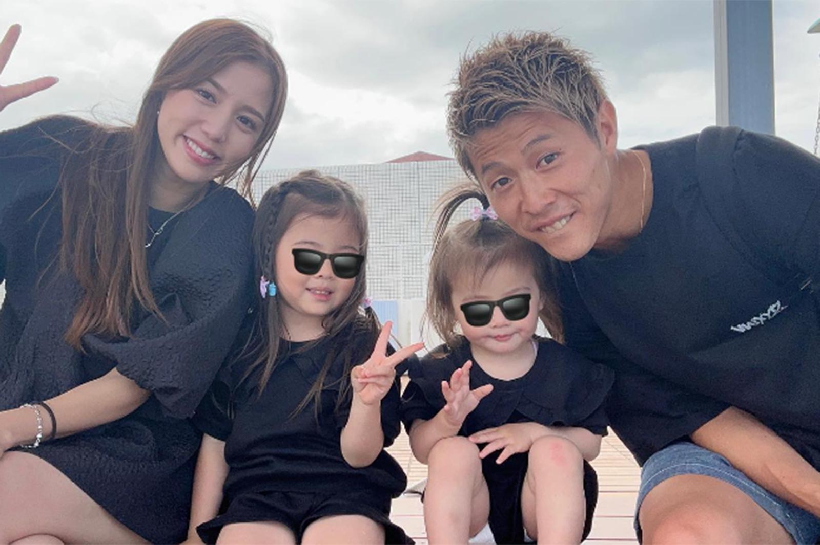 丸高愛実&柿谷曜一朗夫妻、娘たちとお揃いコーデで家族旅行満喫