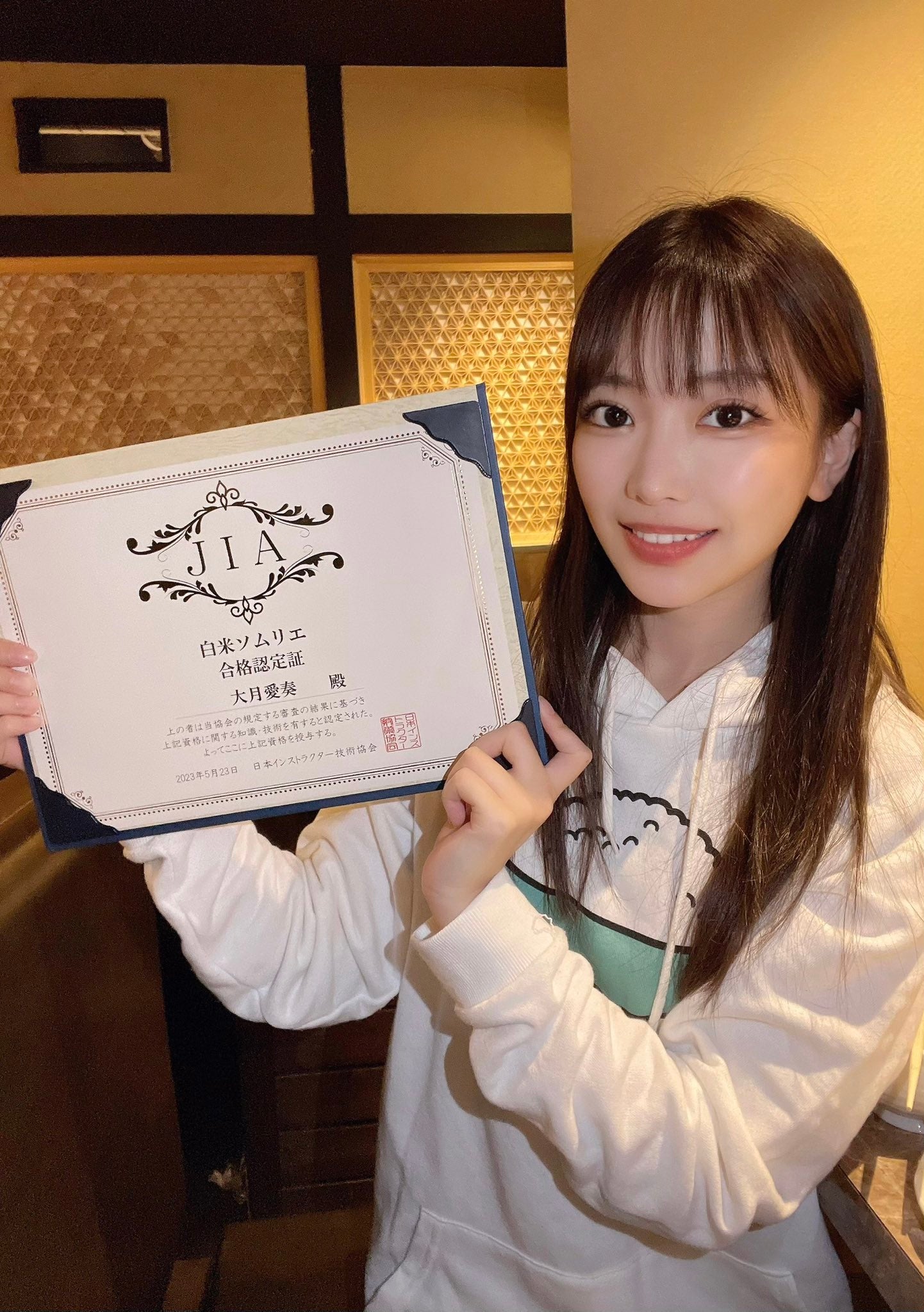 吉沢は「なんと!!!白米ソムリエの試験合格しました!」と白米ソムリエの資格を取得したことを報告。「お米大好きやけん嬉しい」と合格認定証を持ち、微笑む様子を投稿したが、その認定証には「大月愛奏」という本名が記載されていた。