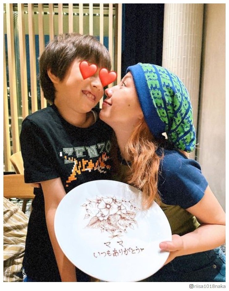 仲は「父の日が来る前に母の日ポストしとかなきゃ 時差」と投稿。花束のイラストと「ママいつもありがとう」という文字が装飾されている皿を持って、息子と密着しているショットなどを公開した。「最近みんなの前では恥ずかしがって塩対応されるし、可愛すぎてカメラに収めたくてカメラ向けても笑ってくれないんだけど、2人になるとずっと恋人繋ぎしてくれて バックハグもしてくれて 荷物も持ってくれるかっこいいトカゲくん」と息子の一面についてつづった仲。