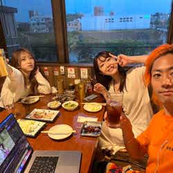 そして、岡崎観光伝道師を務める東海オンエアの巨大看板をバックに撮影した写真を公開。「最高の2日間だった!」「みぃちゃんてっちゃんありがとう」とつづり、峯岸&てつや夫婦との食事会中の3ショットも披露した。