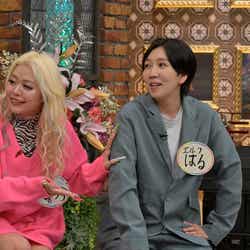 兼近が「ダウンタウンのおふたりにもギャルになってもらいたいんで!」とネームプレートを渡す。そこには、くみっきーが考案した浜田雅功と松本それぞれのギャルネームが記載されており、2人もタジタジ。果たしてダウンタウンのギャルネームとは?盛り上がるゲストに浜田は「とりあえず座れ!」とツッコむ。
