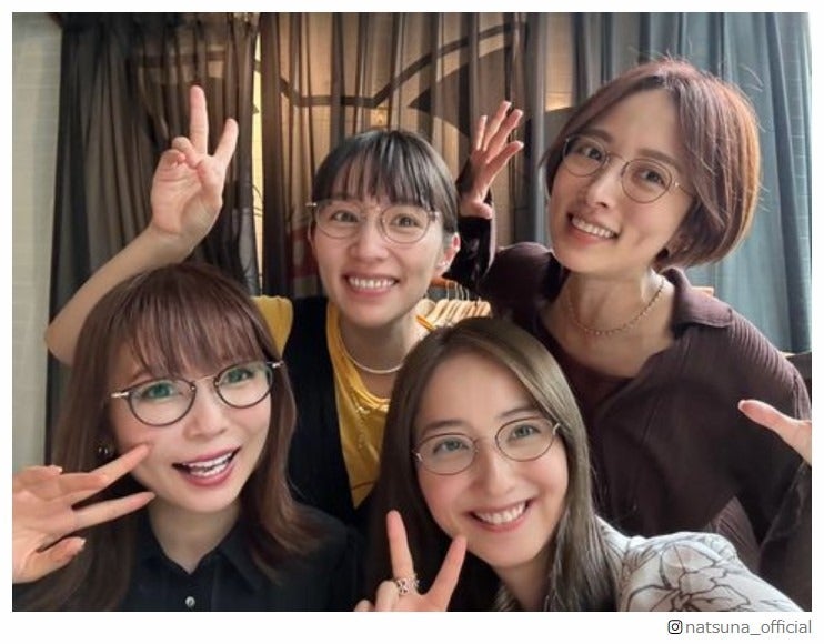 その日の投稿で、「やっっっと4人集まれたひなぎく会」と報告し、佐々木希プロデュースのメガネを4人が着用したショットを公開した夏菜。「まじで喋りすぎてほぼ内容覚えてないくらいです。爆」「ほんとにほんとに楽しかったなぁ」「みんなだいすきだなぁ」「次はすぐあつまろーね」「しあわせタイムでした」と楽しいひと時を過ごしたことを報告した。