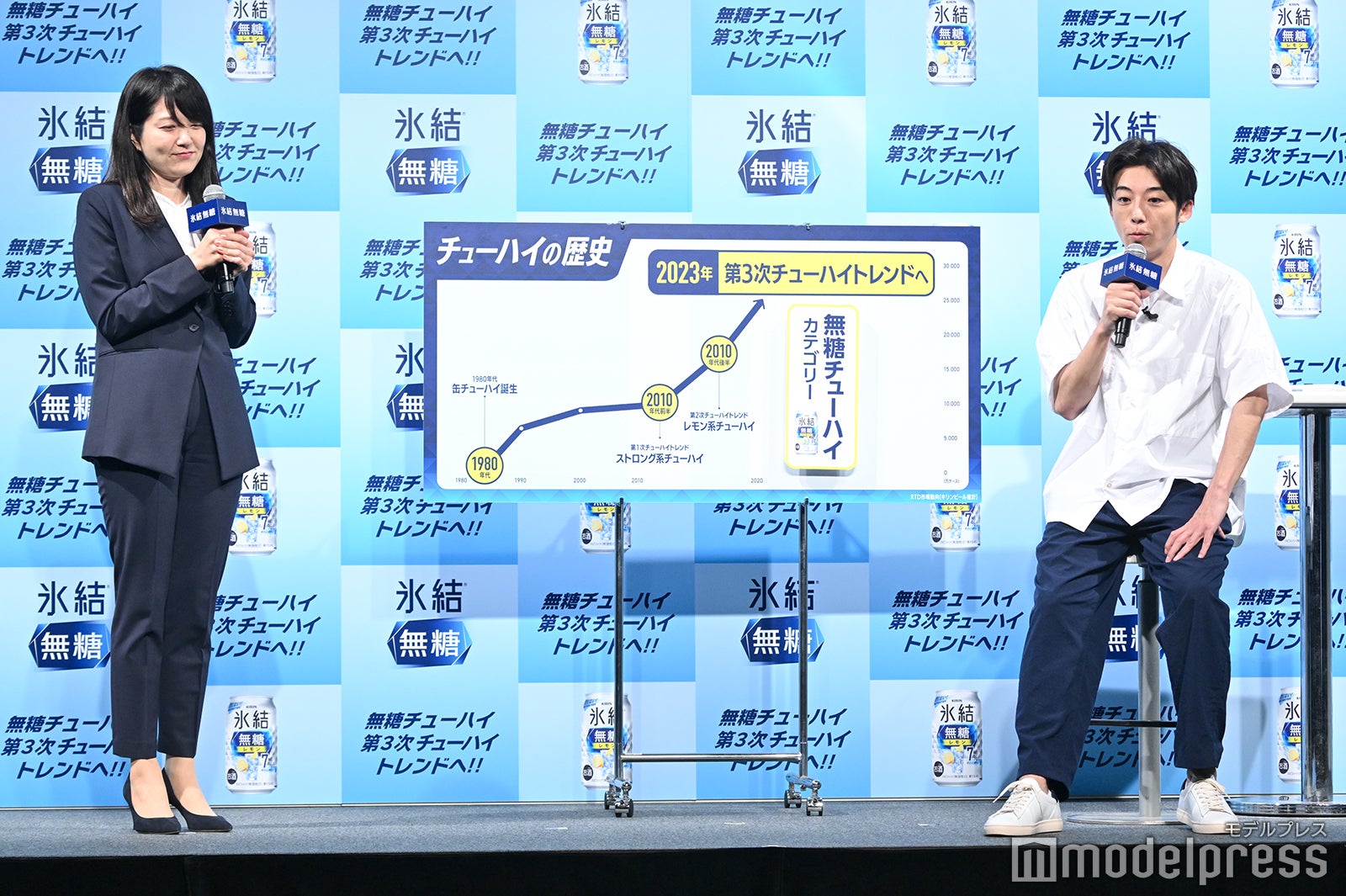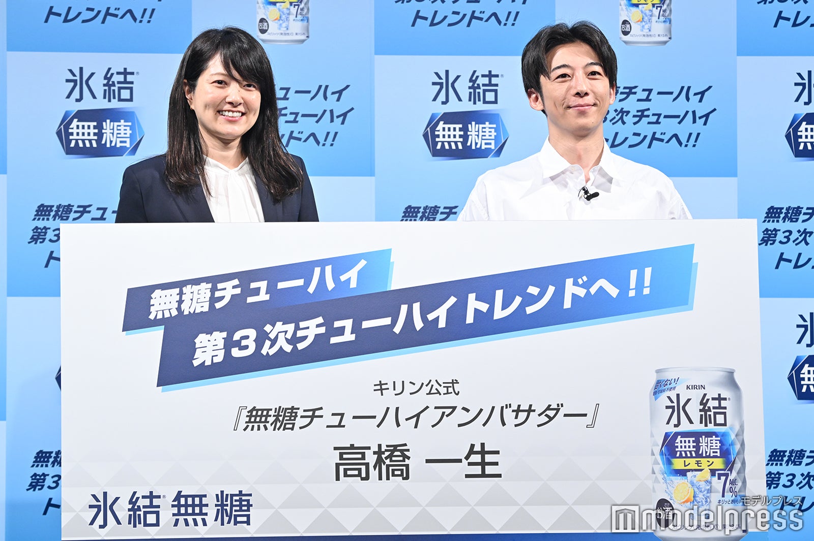 また、同商品が実際に世間に広がっていることを実感しているそうで「発売当初から(CMに)出演させていただいている身としてはとっても嬉しいです。自分の息子のような存在が育っていくような感覚にもなっていますね」と目をキラリ。イベントでは、高橋が同商品のアンバサダー認定講座を受ける一幕もあり、無糖チューハイの売れ行き好調ぶりを数字で実感した高橋は「みなさん、第3次チューハイトレンドで無糖チューハイカテゴリーです。覚えてお帰りくださいませ。この短時間でだいぶアンバサダーとして板についてきた感じがします」とアピールした。