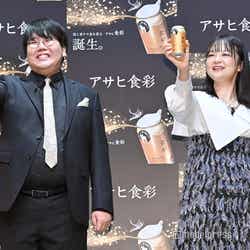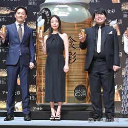 女優のMEGUMIが5日、都内で行われたビール新ブランド発表会に、お笑いコンビ・蛙亭(中野周平、イワクラ)とともに出席。人生初という体験に笑顔を滲ませた。