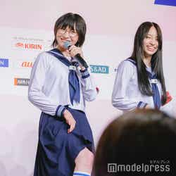 その後、なでしこジャパンとの共通点を聞かれたSUZUKAは、自分たちが履いている靴下に書かれた青春日本代表という文字を見せ、「日本代表という共通点があるかなと思わせていただいております」とにっこり。続けて「青春というものは年齢なんて関係ねえぜ、と。『今を全力で生きていれば、楽しんでいれば青春なんだから、学生のものだけじゃない!』と8年間言い続けております」と青春日本代表に込めた思いを語った。植木選手が「皆さんが自分らしくいるために心掛けていることってなんですか」と質問すると、MIZYUが「自分が好きだなと感じるものに、真っ向勝負しに行くということと、自分が自分らしくいれる環境を探して、そこで輝くっていう意識」と回答。さらに「私は、この(メンバー)3人といると輝くかななんて思うんですけど」と続けると、SUZUKAは「我々、セーラー服で4人、まったく一緒の形じゃないですか。やけど髪型やったりとかそういうところで個性を出していて、それをお互いに『好きやな』って言い合って、この新しい学校のリーダーズの4人という関係が、個性を大事にできているんじゃないかなとめっちゃ思います」と口にした。