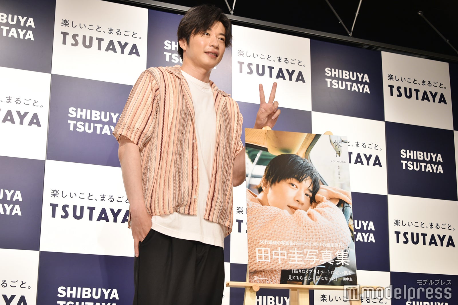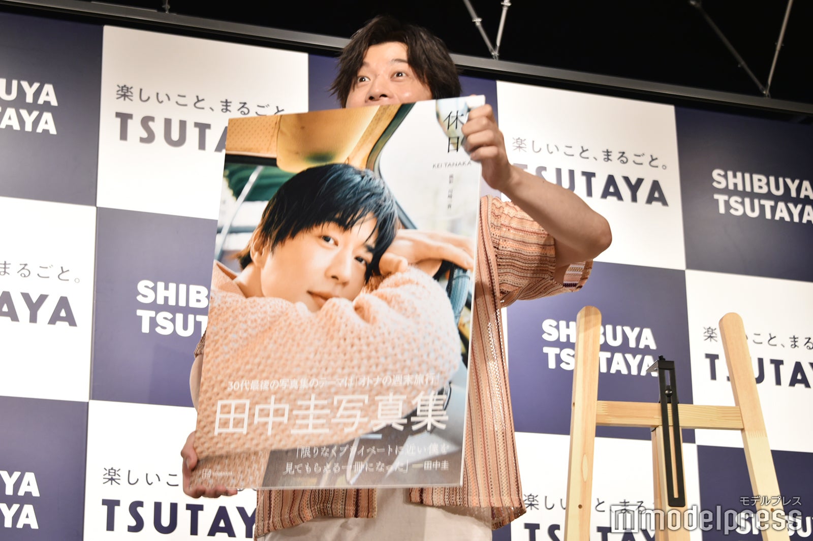 俳優の田中圭が10日、39歳の誕生日を迎え30代最後の写真集「休日」を発売。9日に都内で行われた発売記念発表会に出席し、自身の撮影カットにツッコんだ。
