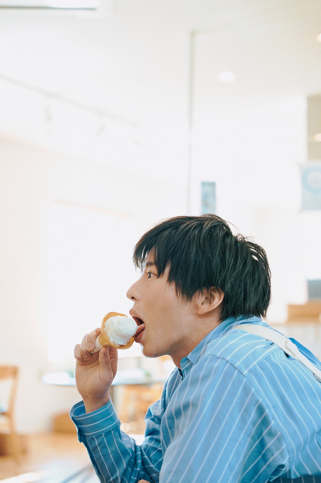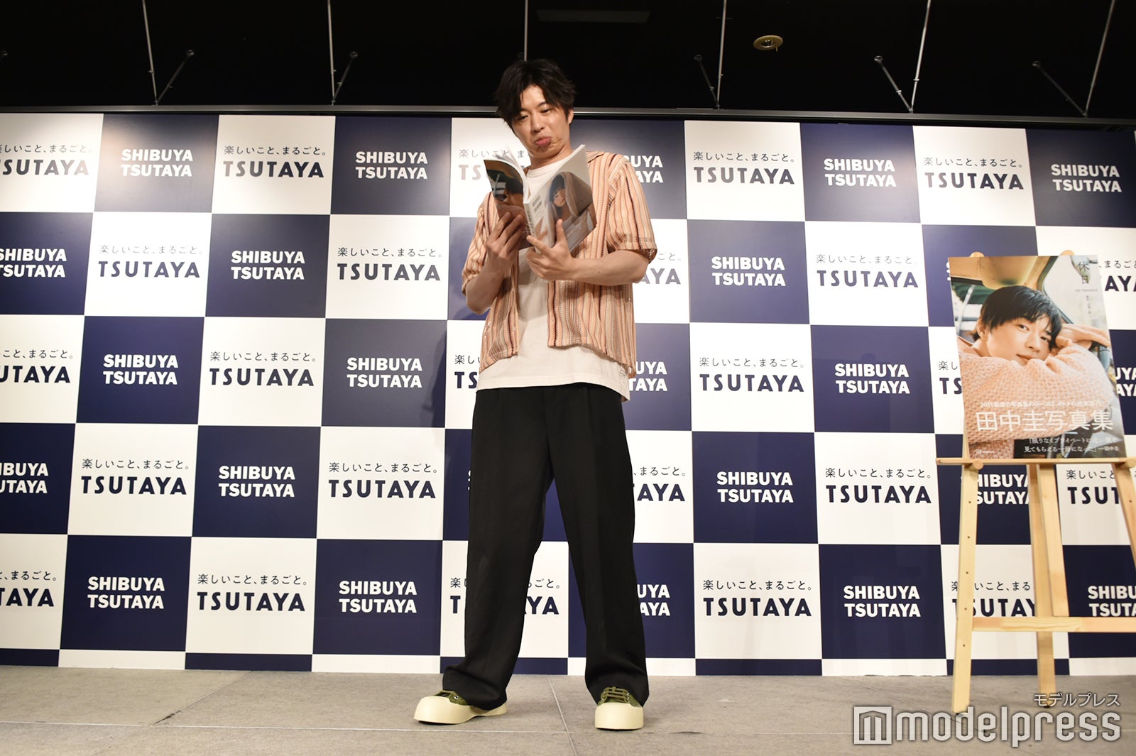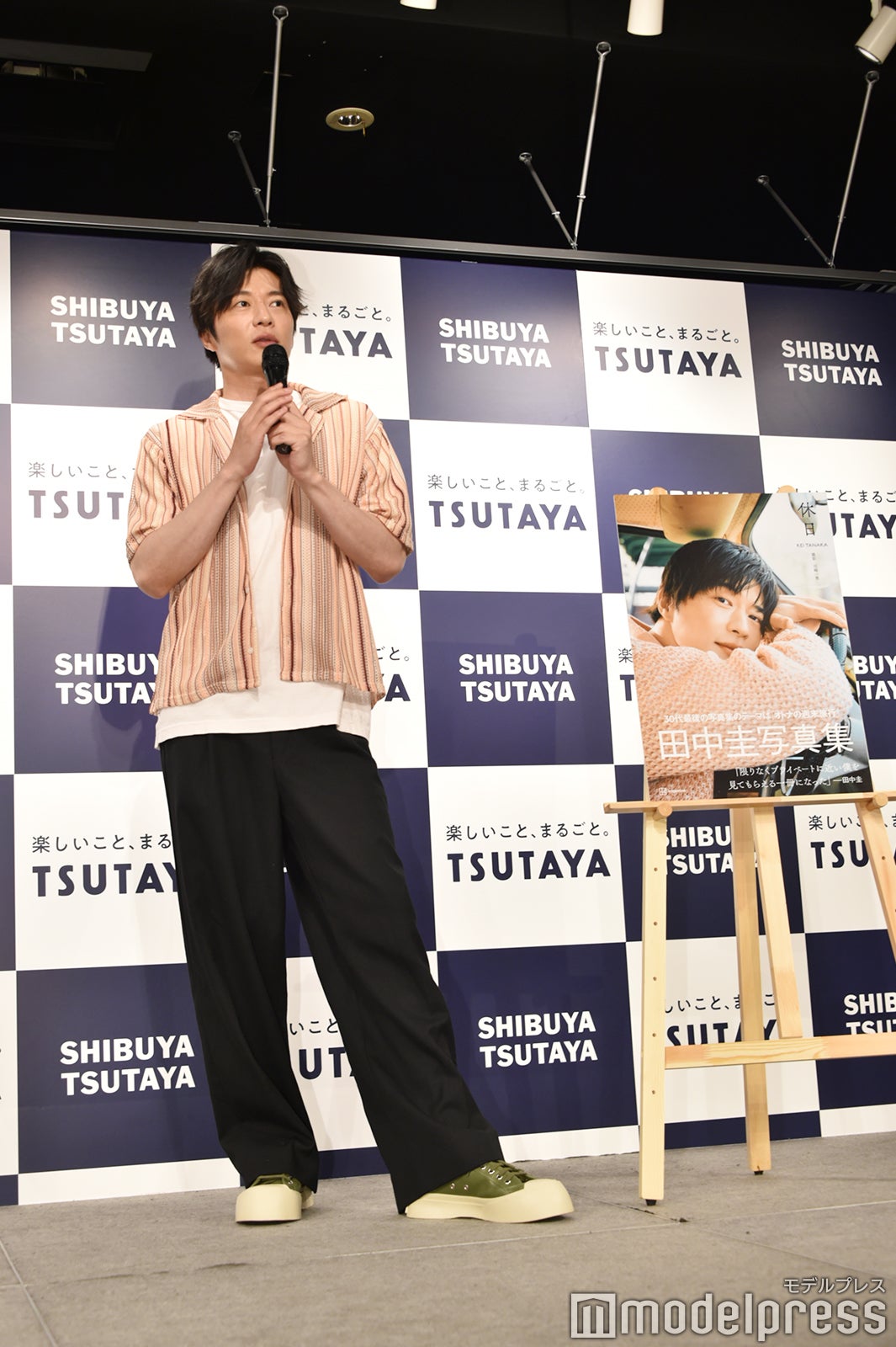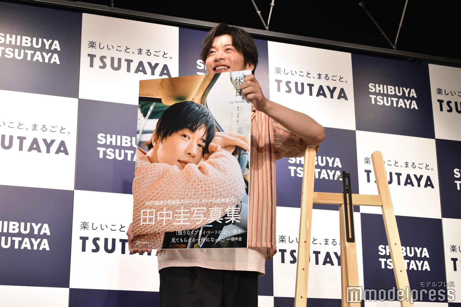 田中自らの希望で撮影地は北海道に。思い出を聞かれると「全部が思い出」としながら「寒かったのと、北海道のソフトクリームはめちゃくちゃ美味しい」と回顧。お気に入りカットは、コーヒーを嗜んでいるオトナな1枚。「本当は、ちょっとはだけてたりとか、寝てるやつを出すのが正しいんでしょうけど、僕はこのただただコーヒーを飲んでいる写真をチョイスしました(笑)。なぜかと言うと、さりげない休日という写真集なので、休みの日に朝起きて、オシャレなカフェでブラックコーヒーを飲んで1日をスタートさせるというのがオトナだなぁ~と思って。個人的には今年ブラックコーヒーを飲んで心から美味しいと思えるようになったので、そういうのも込みで自己満足に浸かる1枚」と理由を明かしたが、「でもこうやってたくさんの方々に宣伝する時にチョイスする写真としてはイマイチだったかなと、反省しております(笑)。すみません」と期待には沿っていないことを謝り、記者を笑わせた。