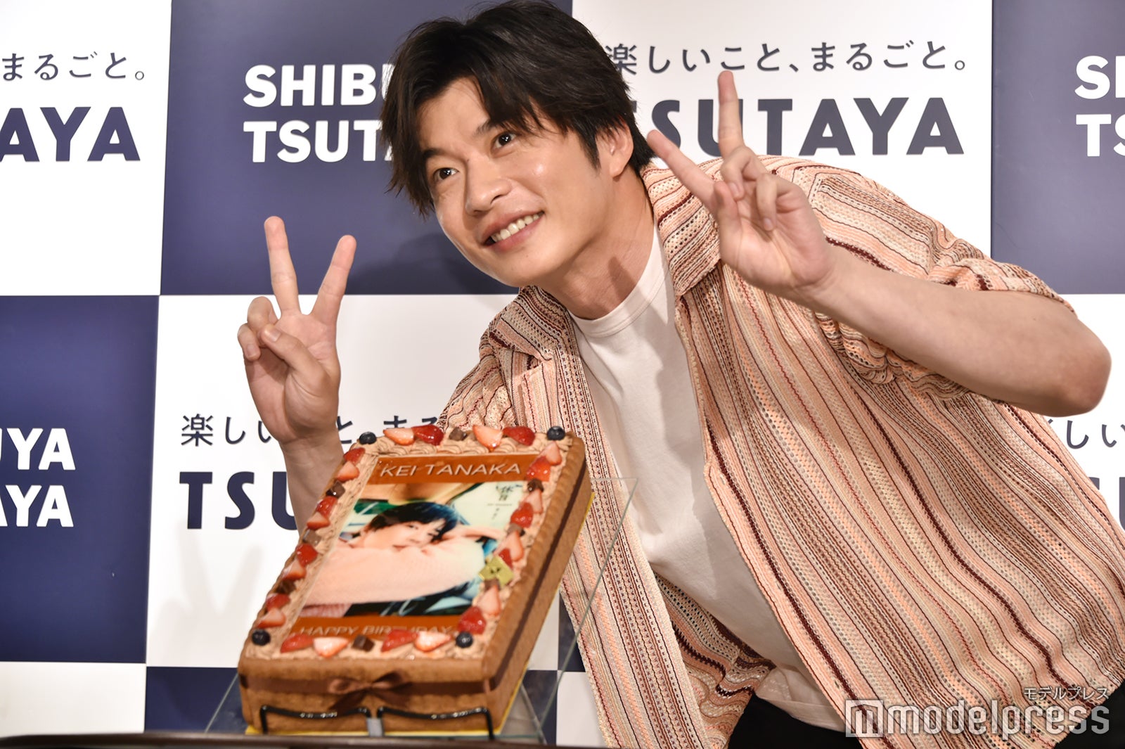 39歳を迎え、40代も目前に迫った田中。どんな40歳になりたいかという質問には「え~どんな40歳になりたいか…」と少し考えてから、「自分自身も周りの人も穏やかで笑っていられるような環境を作れる40歳になりたいですね」と柔らかい表情で抱負を言葉に。その後、写真集の書影がプリントされたバースデーケーキがサプライズで運ばれてくると「おお!ありがとうございます!表紙ケーキ!」と驚きながらも笑顔。「美味しそう、めっちゃいい匂いする」とケーキを見つめる田中に、MCから「ぜひ後ほど召し上がってください」と声がかかると、「いただきます!(ケーキの表紙の)顔をドンッ!ってやって食べます」と返して笑いを誘った。