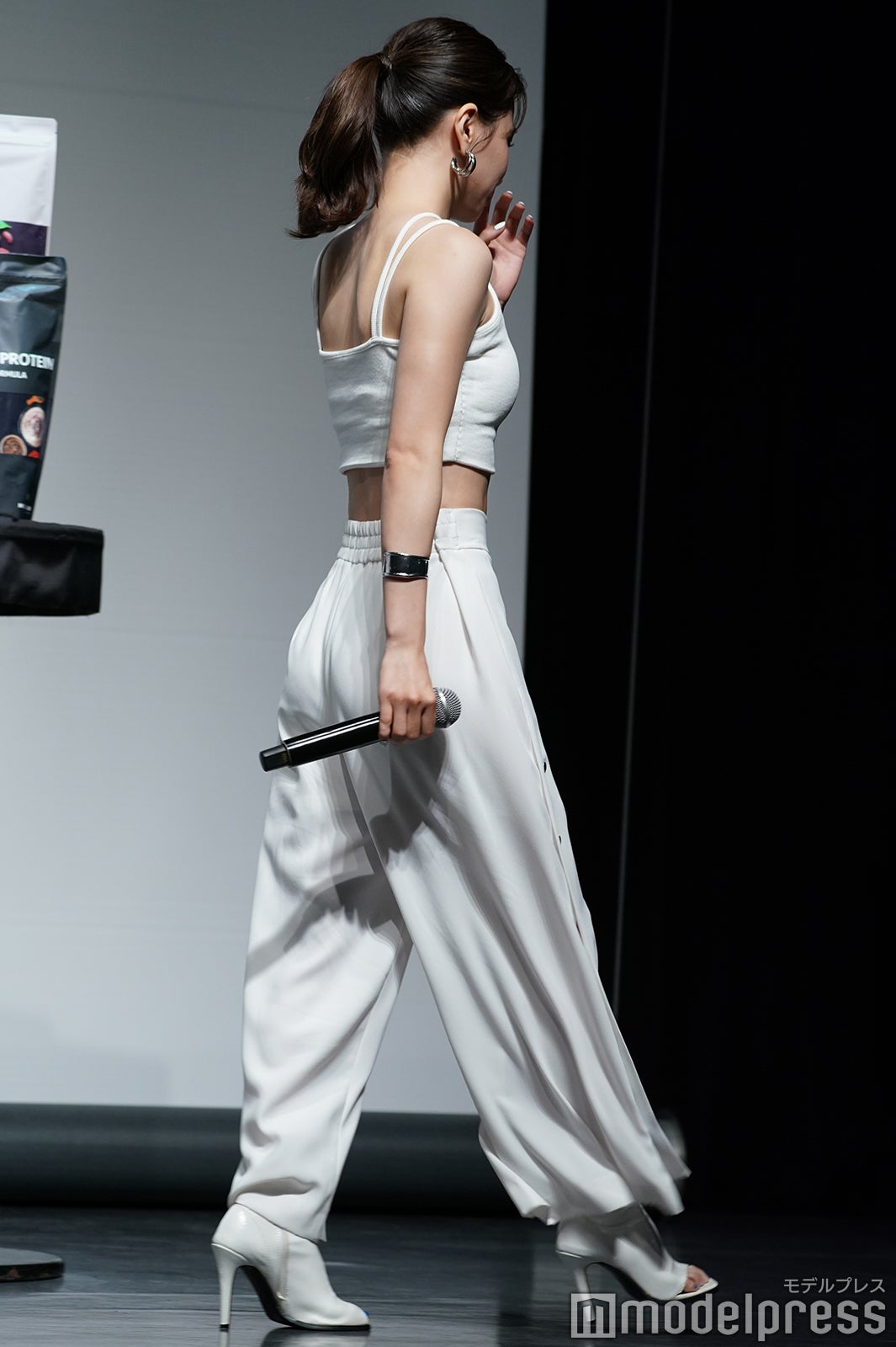 山本は、ホワイトのセットアップで圧巻の美ボディを披露し登場。「“とりあえず大事なところだけ隠しとけばいいかな”みたいな露出の服とかも多くなるので、一番気を遣うシーズンじゃないですか、夏って。なので、どこから見られてもいいようなボディを目指して日々頑張りたいなと思います」とこの夏の抱負を言葉にした。また、「自信のあるボディパーツは?」との質問に、山本は「やっぱり腹筋ですかね。よく出してます」とにっこり。竹内が「腹筋のイメージがついてますよね」と声をかけると、「ついてますよね(笑)」と笑顔を見せた。