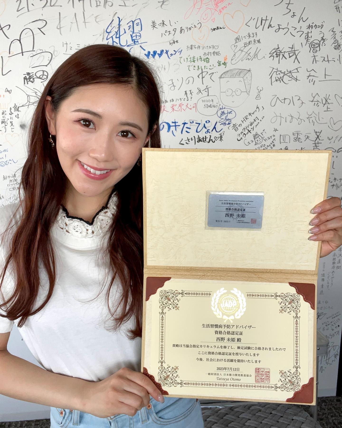 西野未姫、生活習慣病予防アドバイザーの資格を取得 名前にも注目集まる