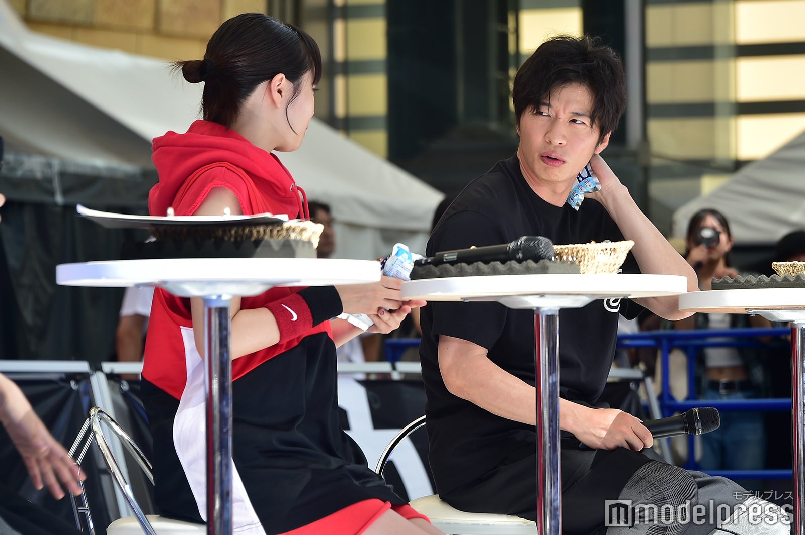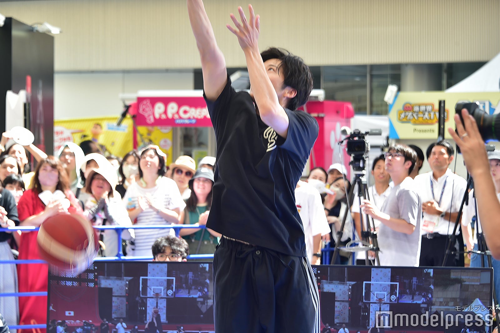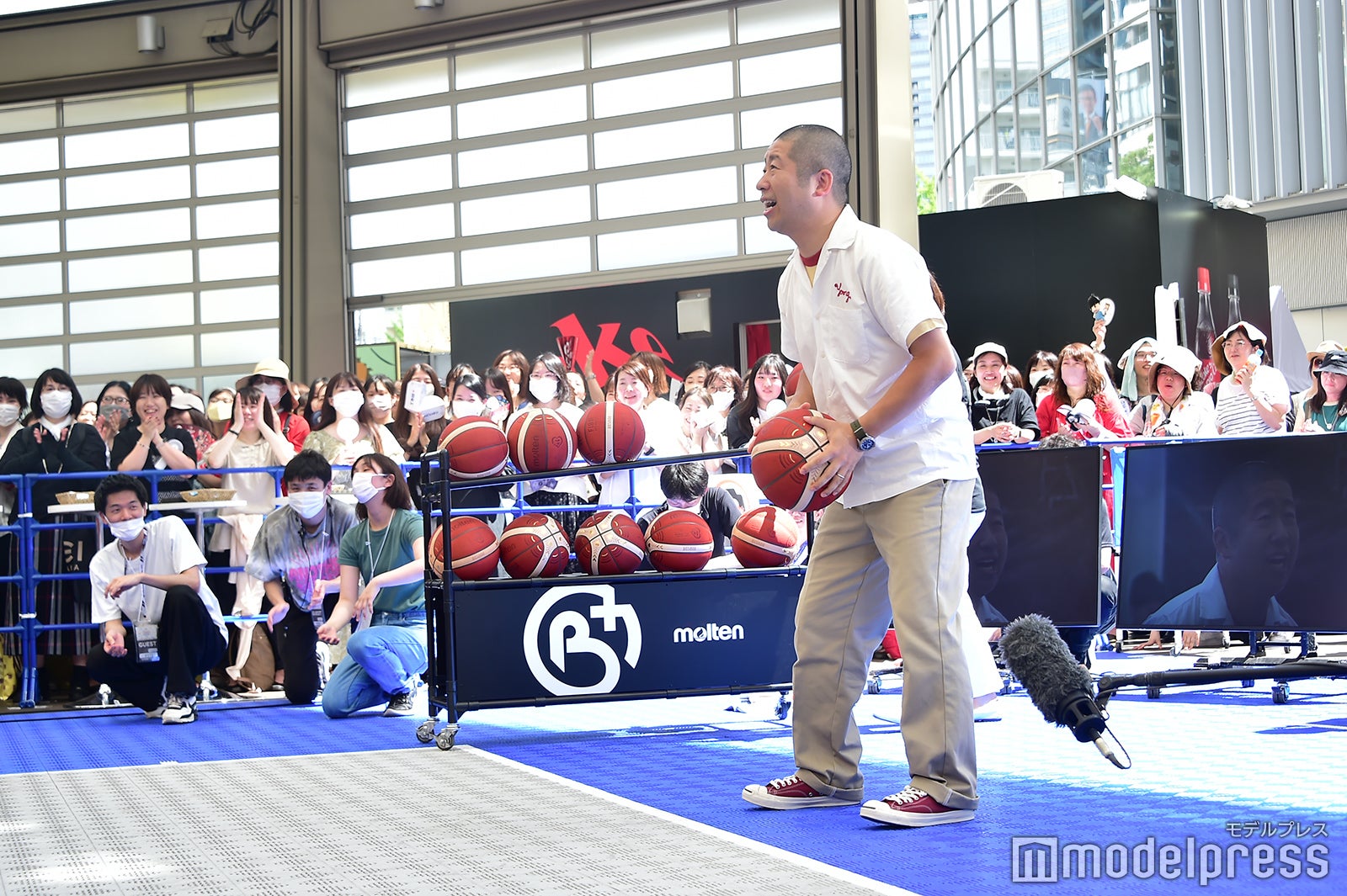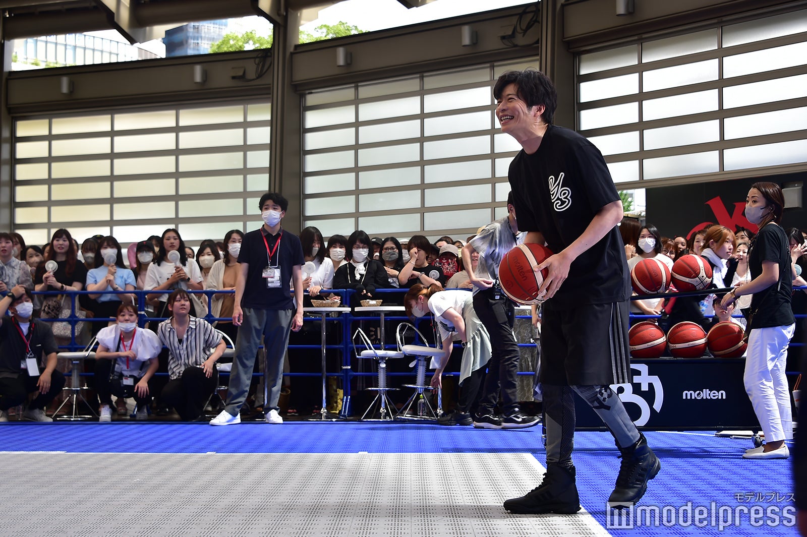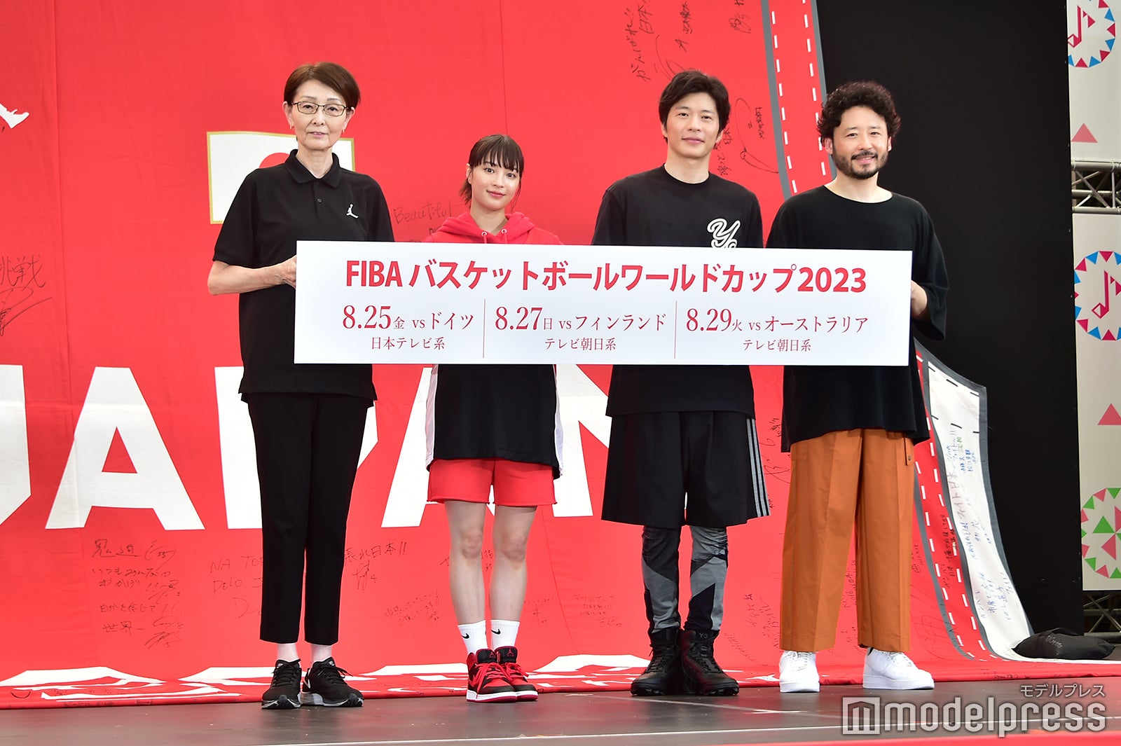 田中圭&広瀬すず、3ポイントシュート挑戦 バスケW杯盛り上げる