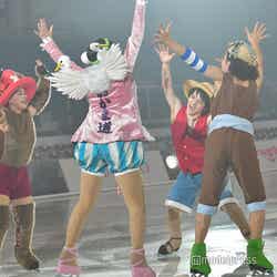 8月11日より開幕するアイスショー『ONE PIECE ON ICE(ワンピース・オン・アイス)~エピソード・オブ・アラバスタ~』の公開リハーサルが10日、横浜にて行われ、主人公のモンキー・D・ルフィを演じる宇野昌磨をはじめ、織田信成、本田真凜、本田望結、無良崇人らが参加。交際を公表している宇野と真凜はカップル共演となり、息ぴったりのスケーティングを披露した。